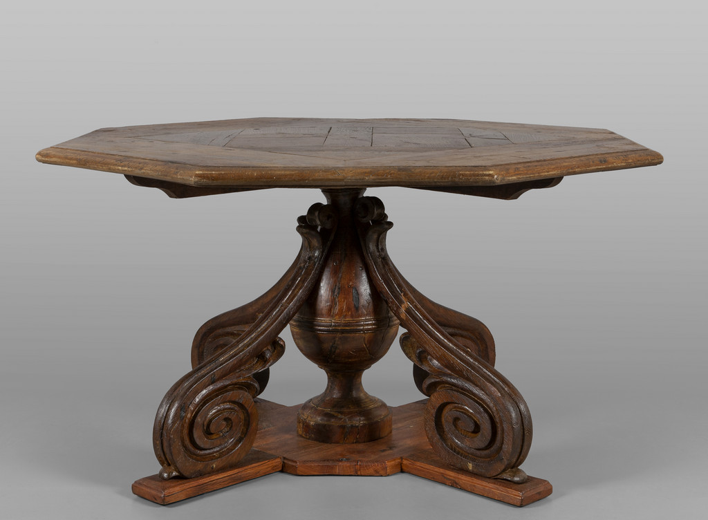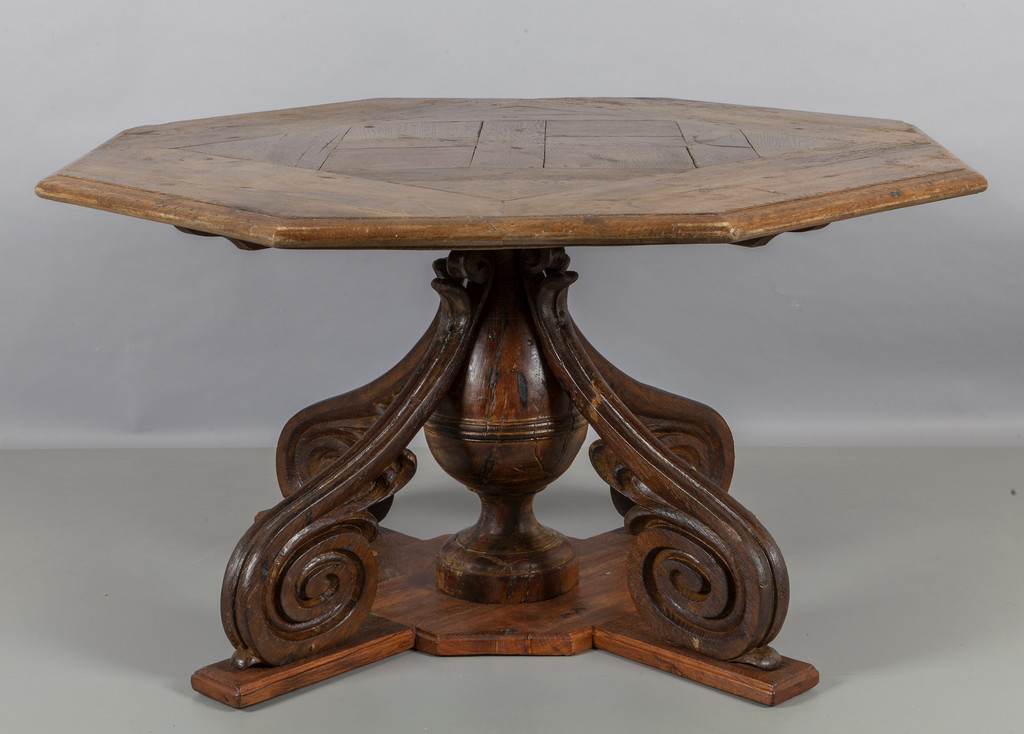 Grande tavolo di forma ottagonale in rovere, Francia sec.XVII