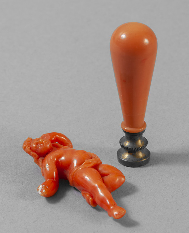 Timbro in corallo e angioletto in corallo, sec.XIX