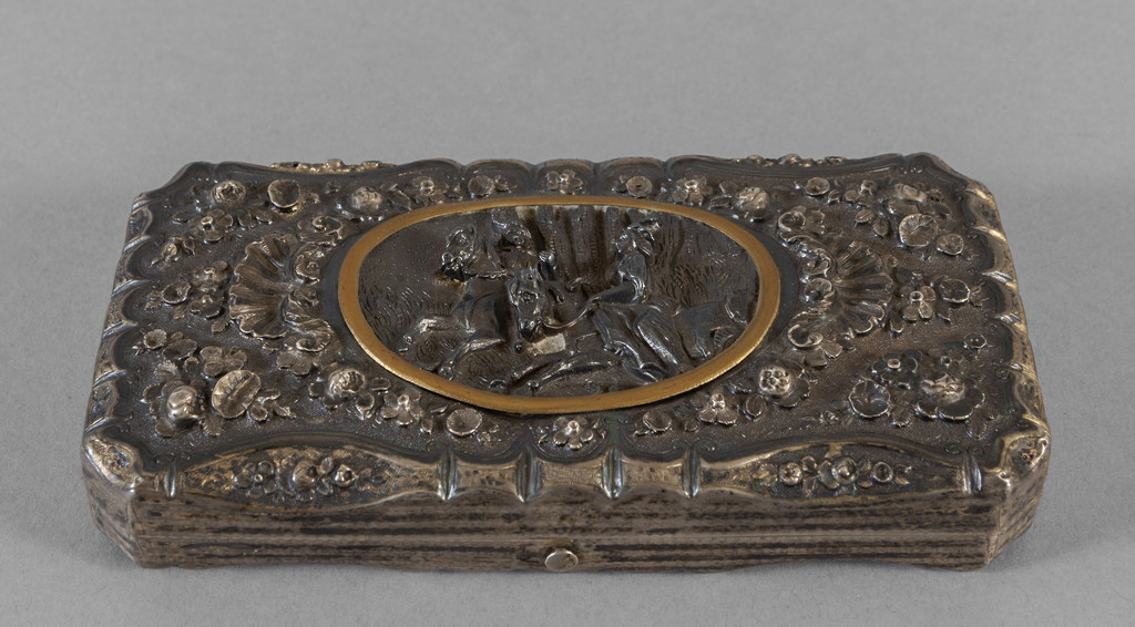 Lotto 0909 | Scatola in argento sbalzato con figura di dama e