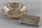 Scatola e vassoietto in argento sbalzato a motivi