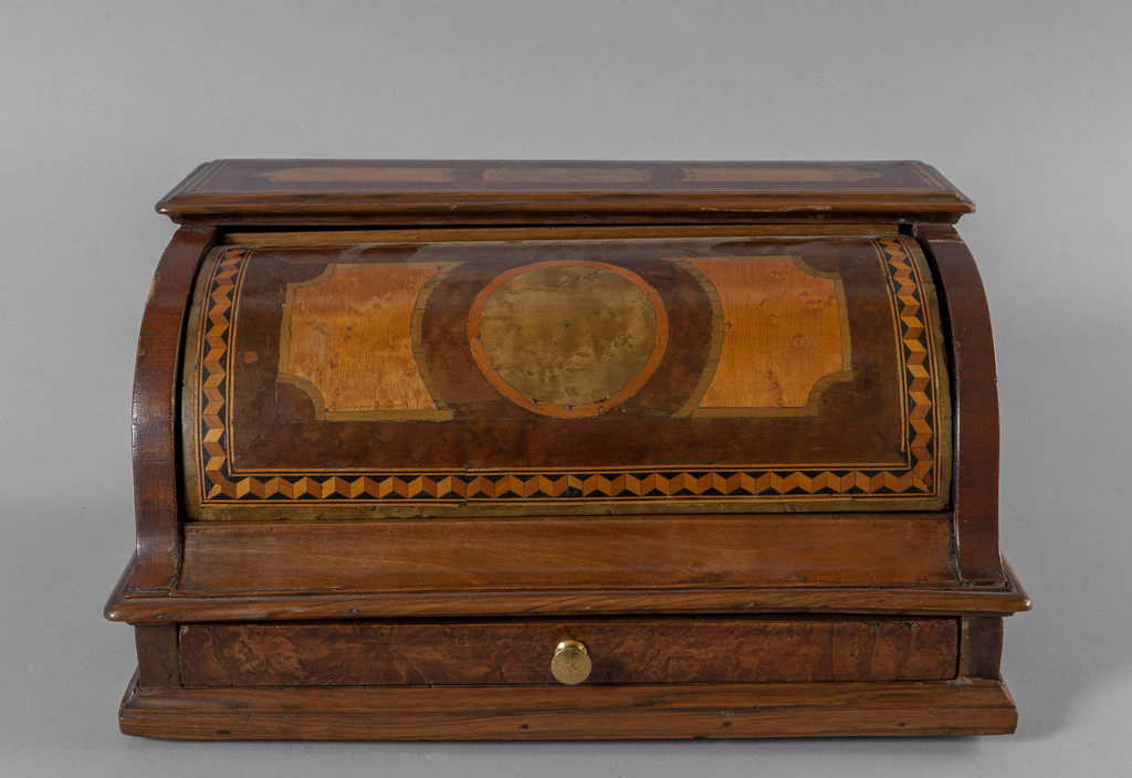 Calamaio in legno intarsiato in legni vari, lo