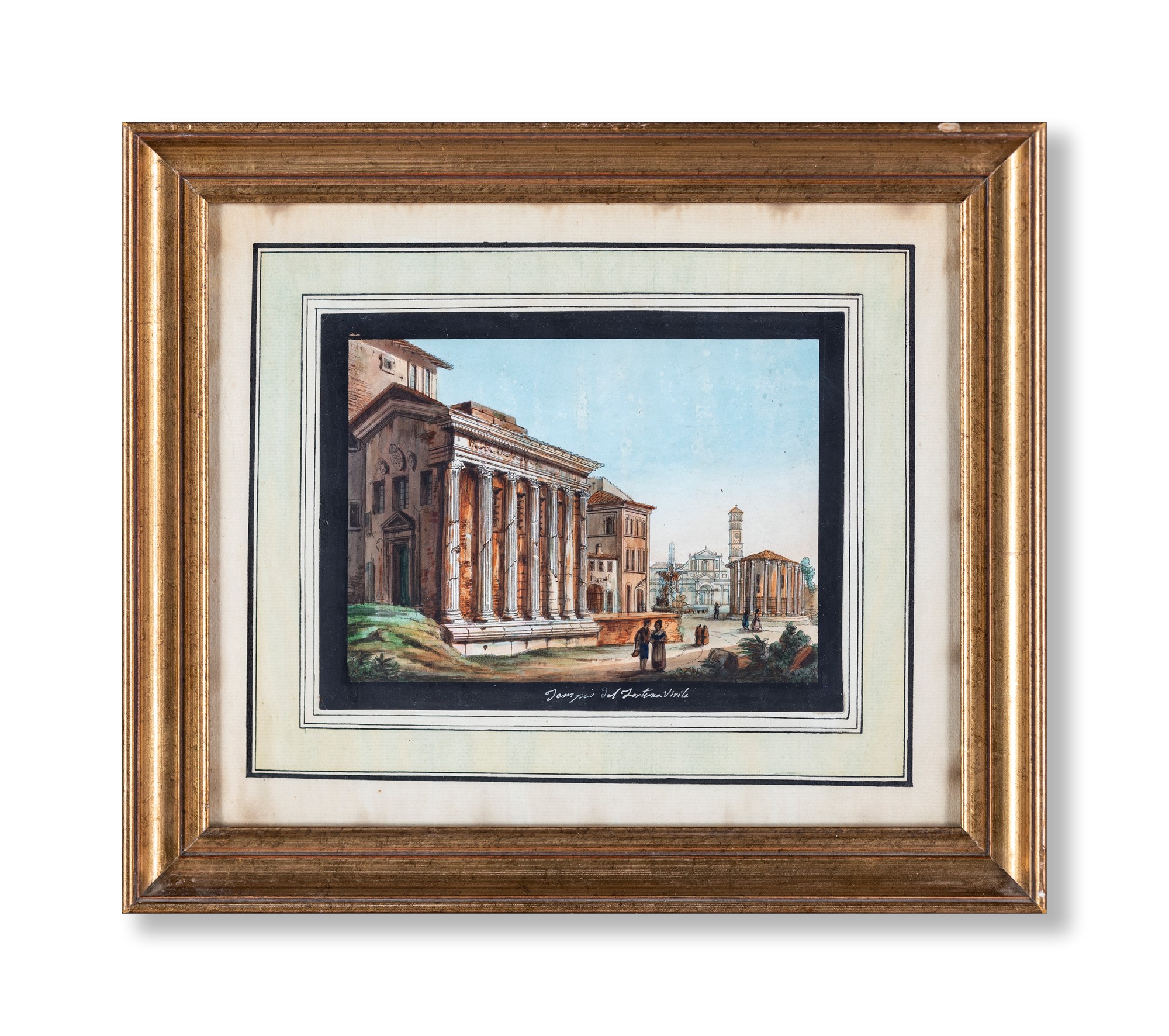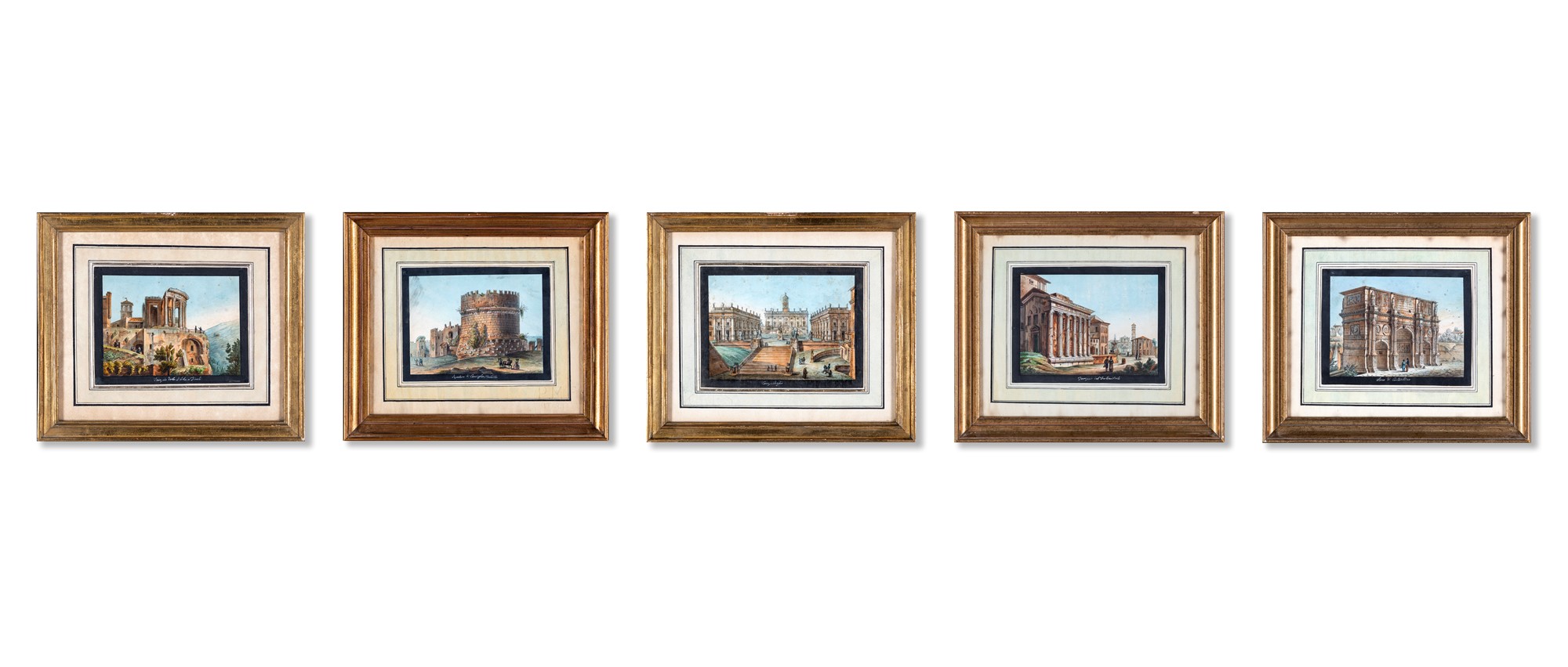 Pittore del XIX secolo - Cinque vedute di Roma - raffiguranti il tempio della...