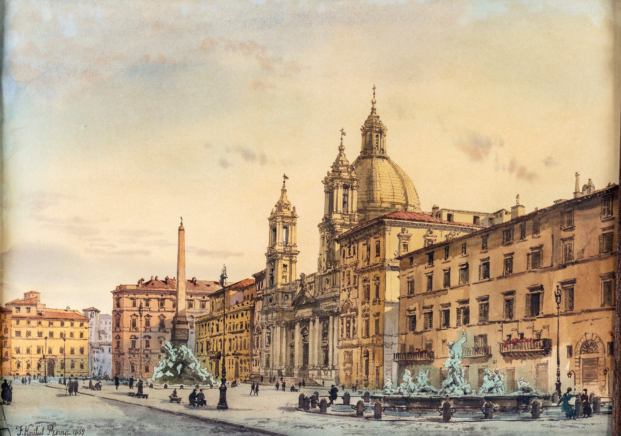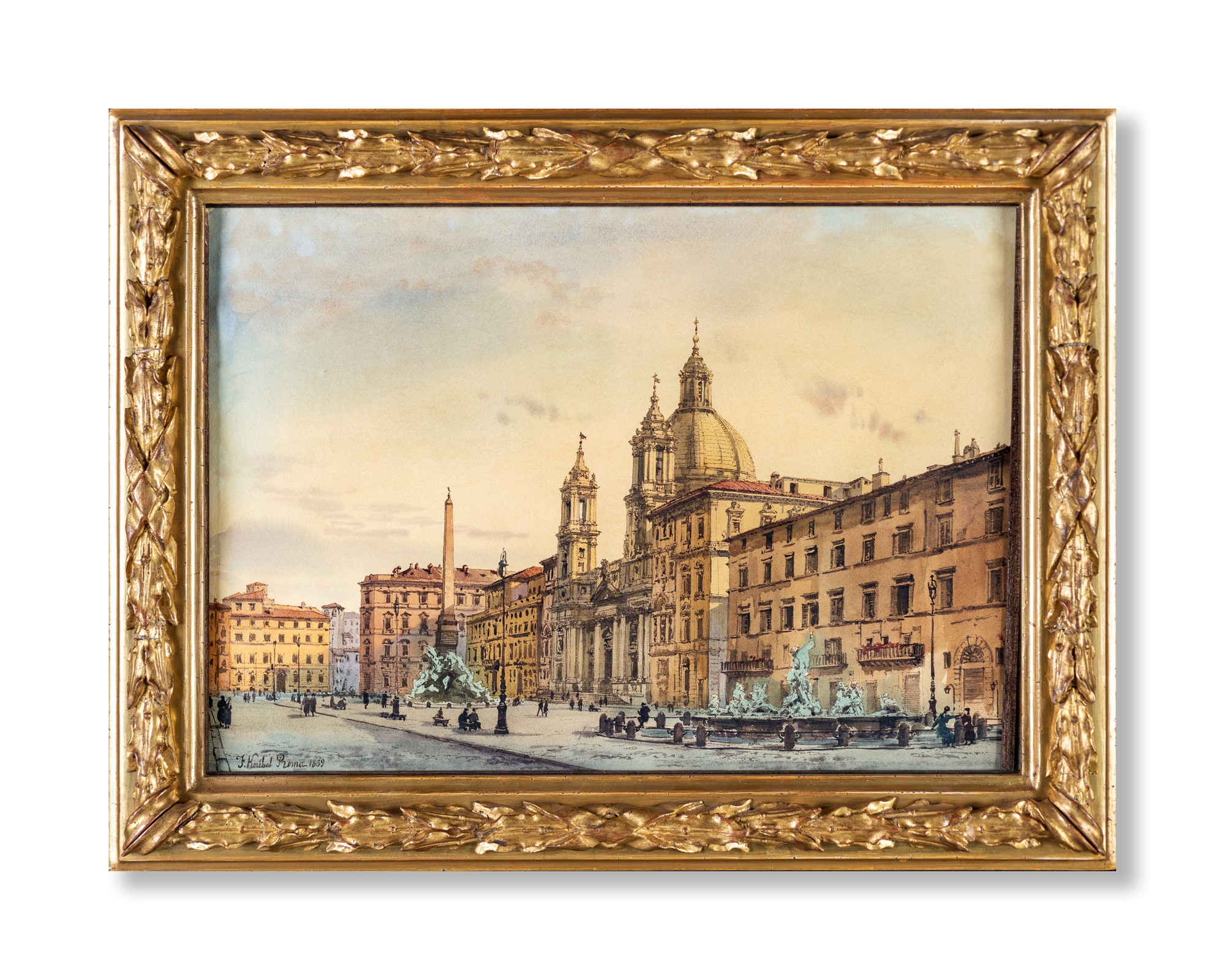 Lotto 15 | Pittore del XIX secolo - Veduta di piazza Navona - Iscritto in basso a...