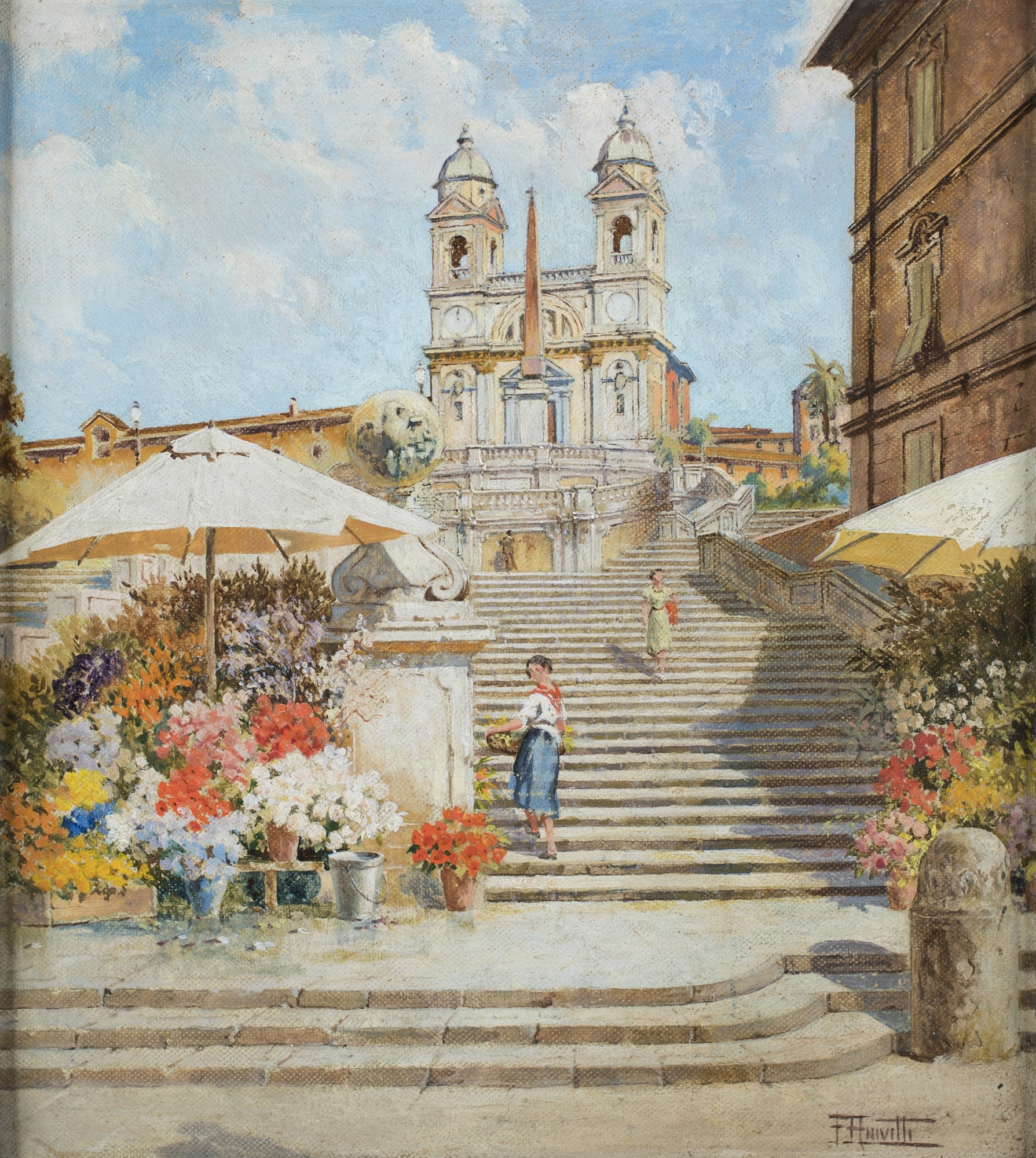 Filippo Anivitti - La scalinata di Trinità dei Monti - Firmato in basso a...