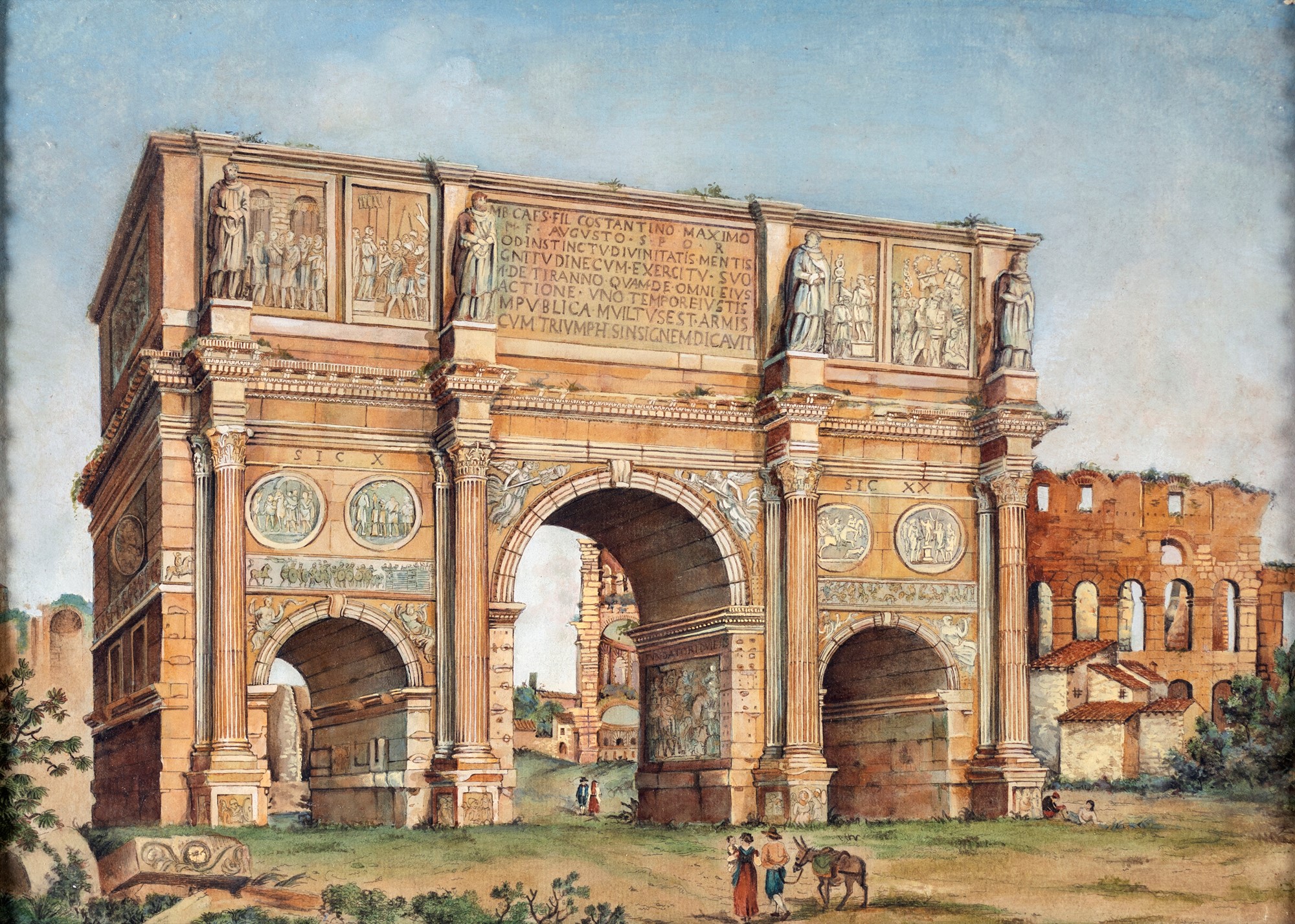 Pittore degli inizi del XIX secolo - L'Arco di Costantino - acquerelli su carta - cm 29x41