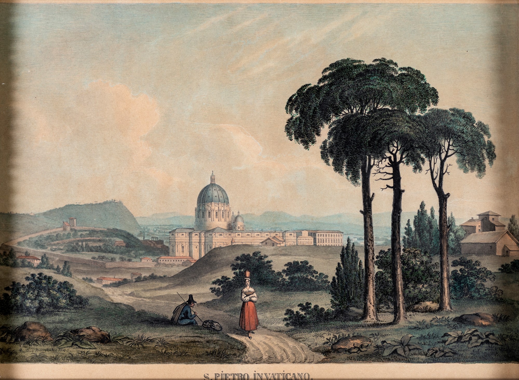 Gustaf Brusewitz - Il Vaticano dalle falde di Monte Mario - Firmato e datato in basso a sinistra: Gustav Brusewitz 1840 - acquerelli su carta - cm 34x48