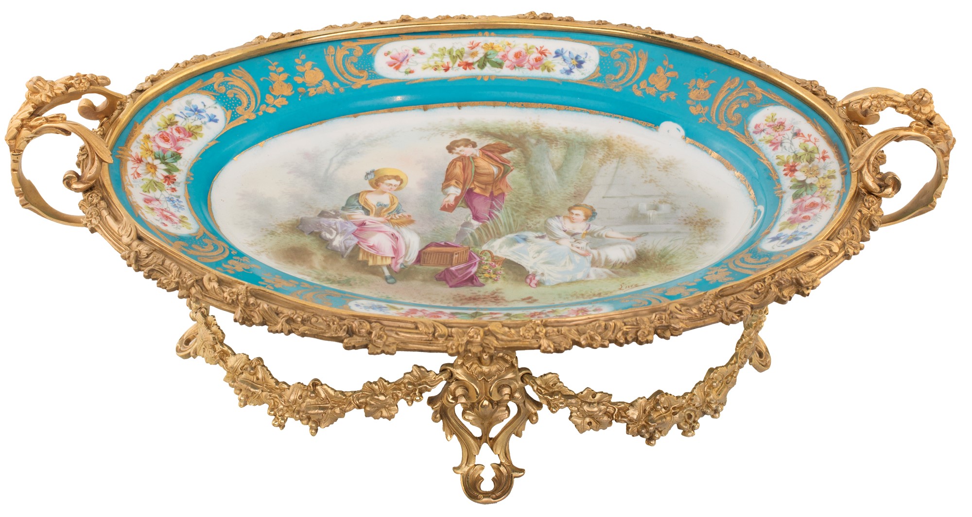 Alzata in porcellana policroma e bronzo dorato, Sèvres, XIX secolo - con...