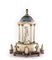 Modello di tempio circolare in legno laccato bianco, inizio XIX secolo - con finiture ornamentali e funzionali in bronzo dorato; al centro figura classica desunta dall'antico, cupola sormontata da pigna, basamento polilobato dipinto ad imitazione del porfido, ornato da pilastrini collegati da catenella - cm 64x45x50