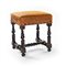 Panchetto in noce, XVII secolo - con sedile imbottito rivestito in cuoio coevo, gambe a rocchetto - cm 53x46x39
