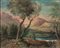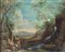 Scuola Romana del XVIII secolo - a) Paesaggio fluviale con cascatella e...