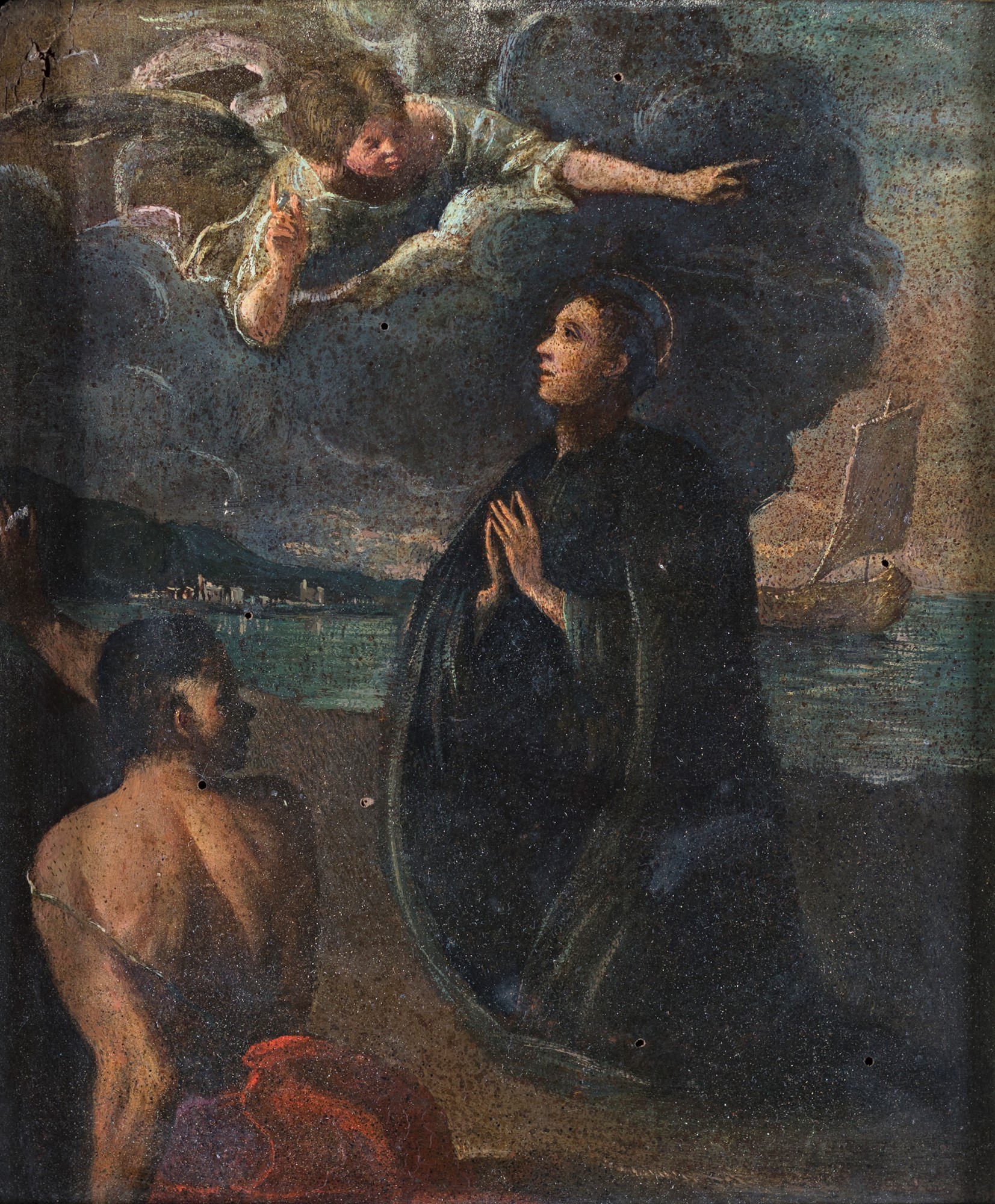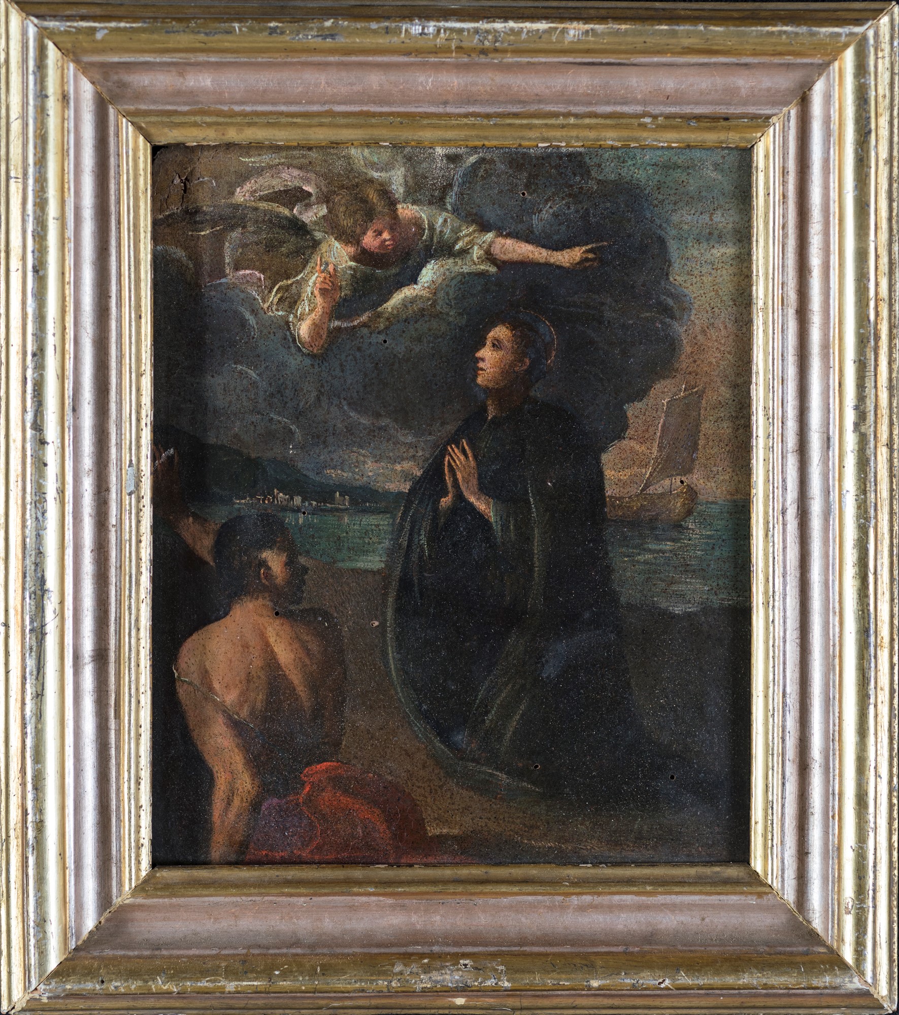 Pittore del XVIII secolo - Paesaggio marino con San Francesco da Paola - olio su tavola - cm 33x28