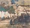 Vittore Antonio Cargnel - Scorcio di paese con figure - Firmato in basso a...