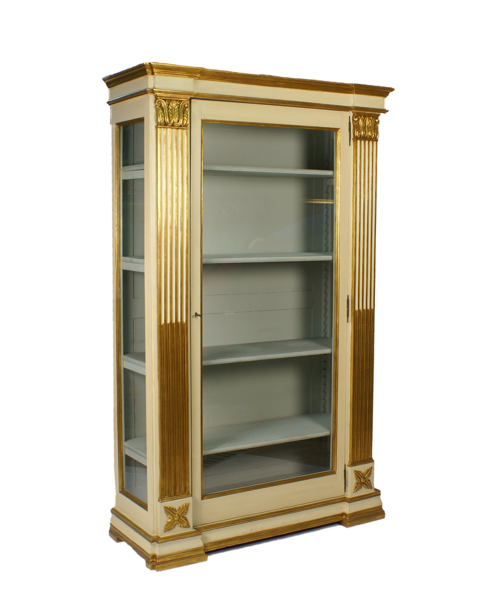 VETRINA IN LEGNO LACCATO E PARZIALMENTE DORATO vecchia manifattura fronte con...