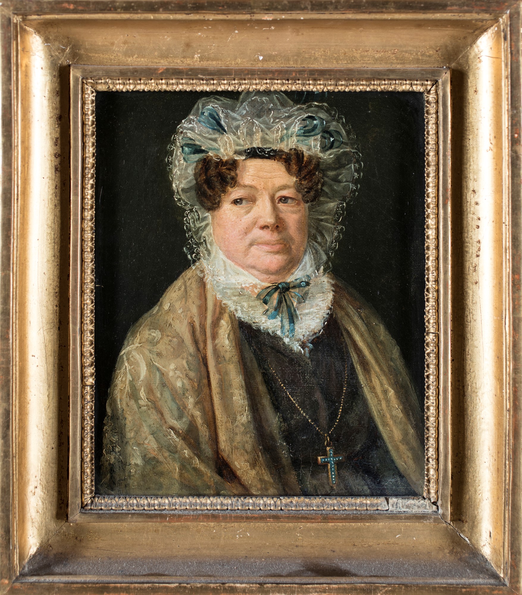 Pittore del XIX secolo - Ritratto di gentildonna con cuffia - olio su tela -...
