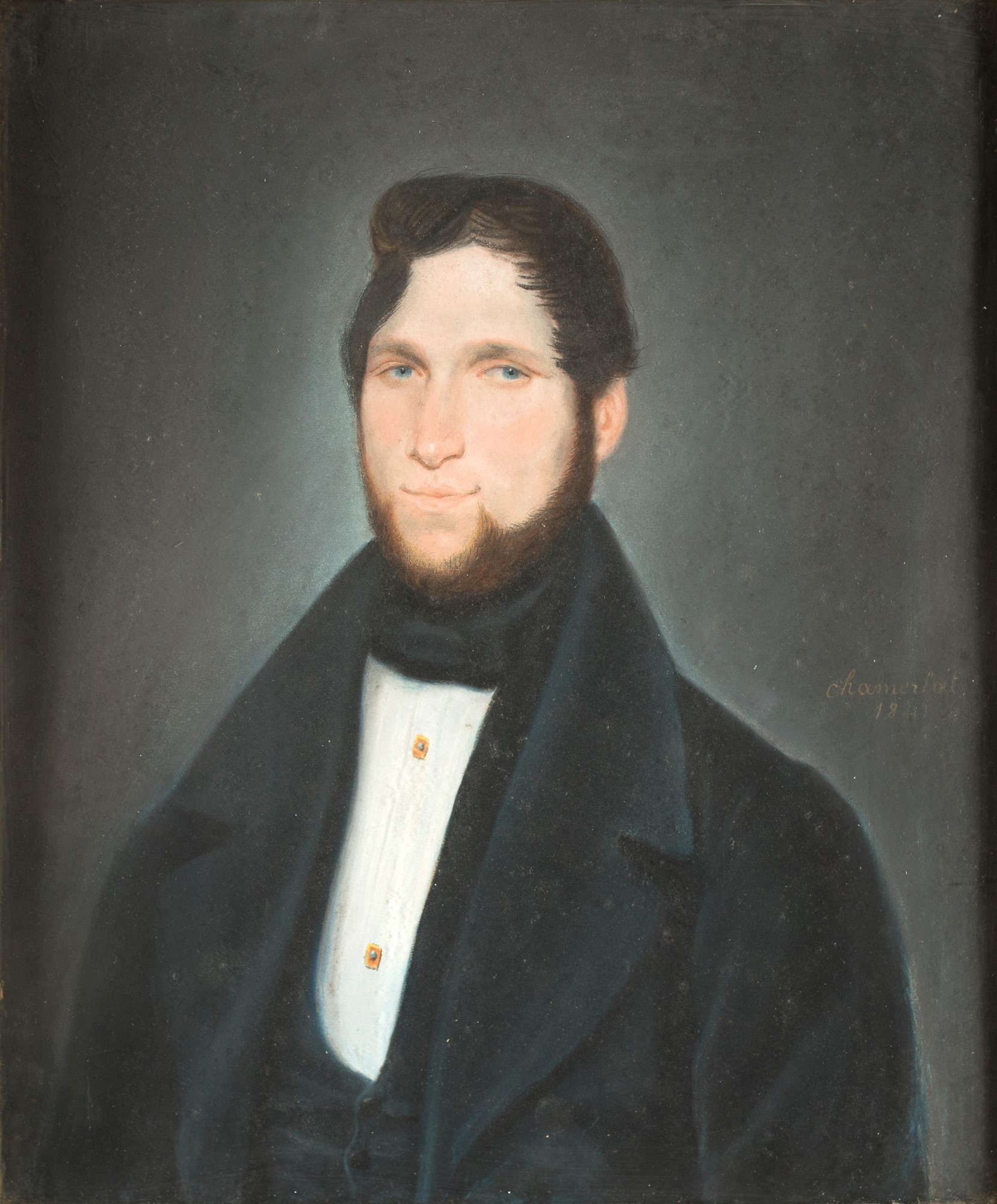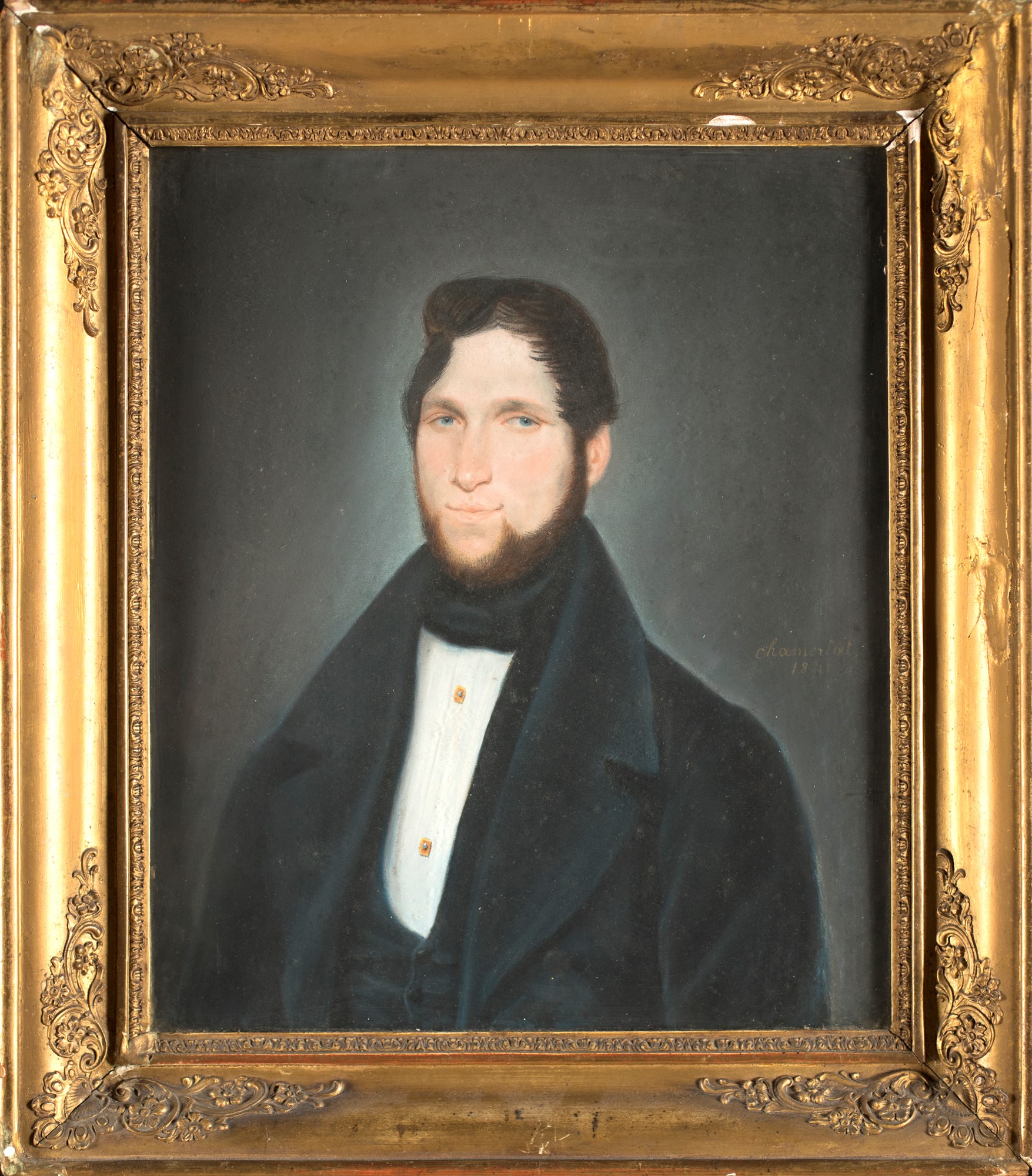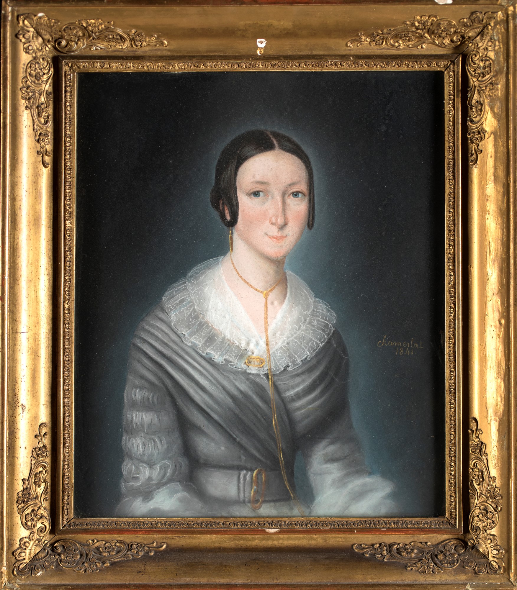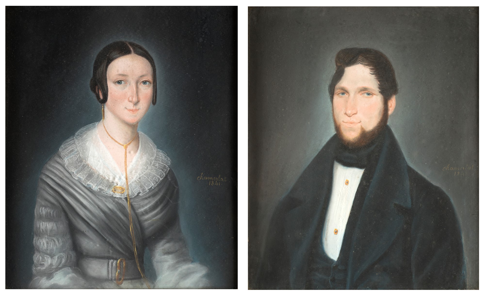 Jules-Marc Chamerlat - a) Ritratto di gentiluomo b) Ritratto di gentildonna - Entrambi firmati e datati a destra: Chamerlat 1841 - coppia di pastelli su carta - cm 46x38