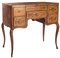 Toletta da centro in noce, Piemonte, XIX secolo - di gusto settecentesco, intarsiata in legno di frutto a volute poste a cornice delle varie partizioni. Sorretta da gambe sagomate, reca cassetti frontali e piano con sezione centrale apribile con specchio al verso racchiuso da cornice in lego dorato - cm 79x82x56