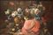 Michele Antonio Rapous - Natura morta di fiori con vasi classici e drappo...