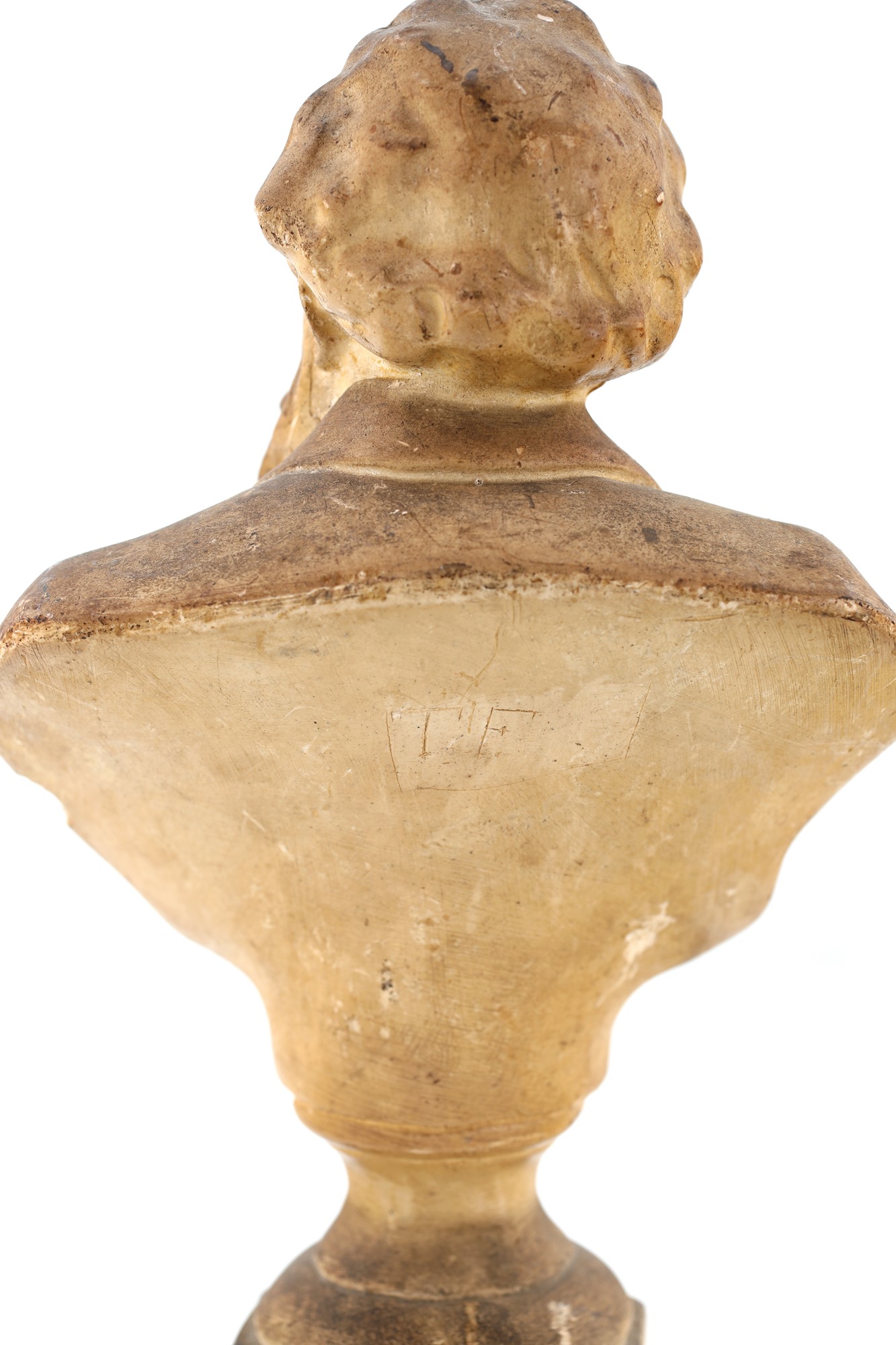 Bustino in gesso patinato - raffigurante il poeta Giosuè Carducci. Al verso le iniziali T.F. - altezza cm 25