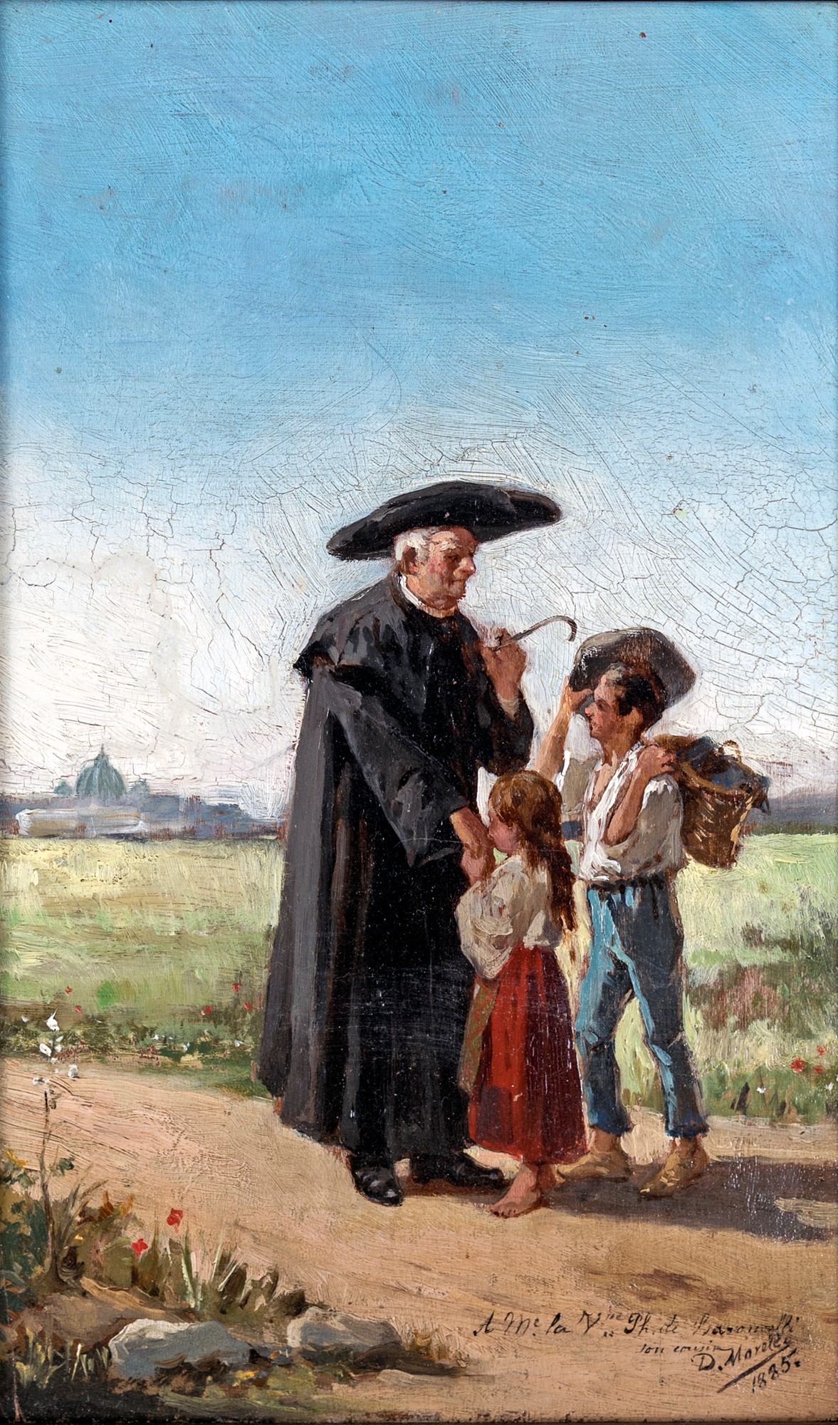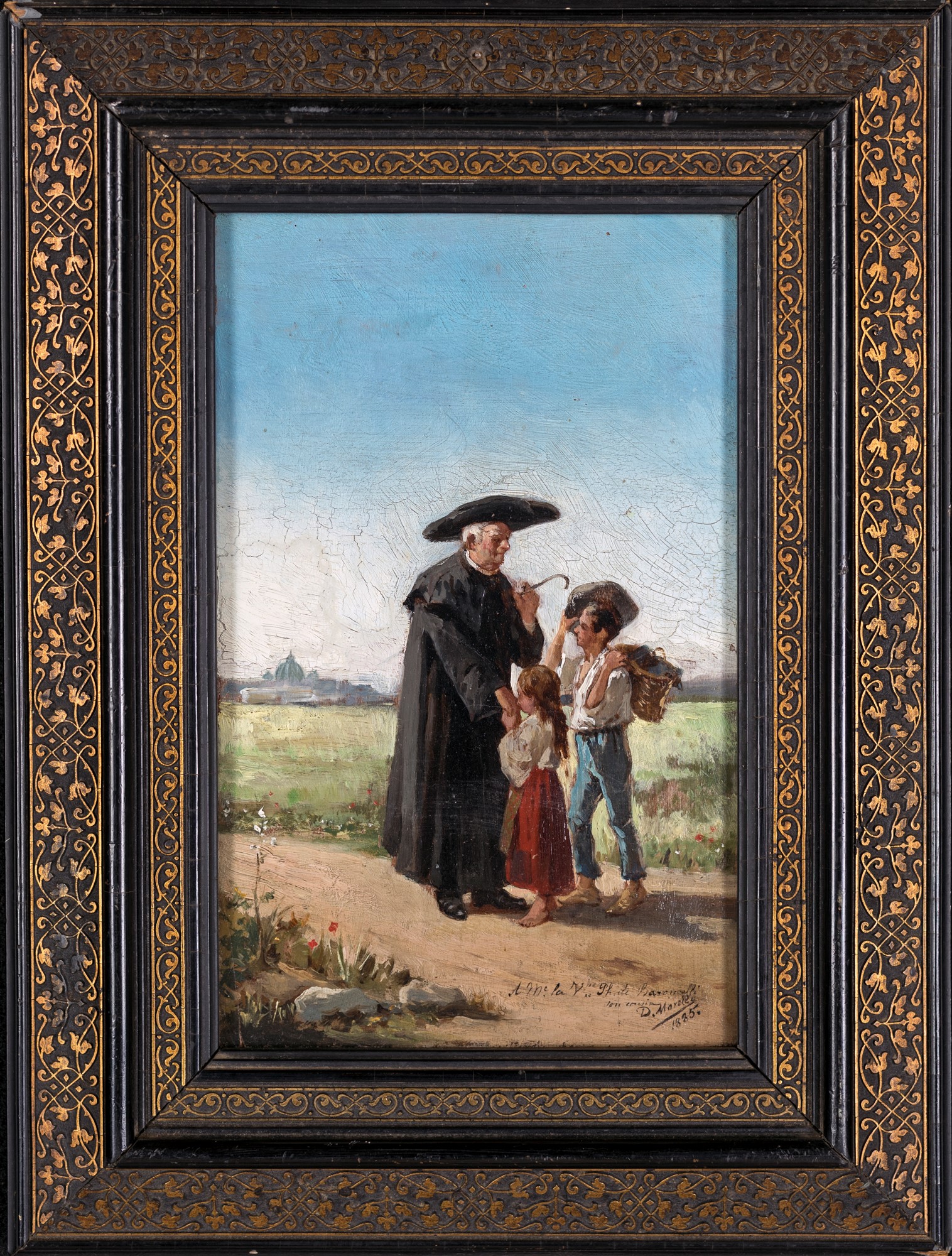 Domenico Morelli - L'assoluzione - Dedica ad personam e firma con data 1885 in basso a destra - olio su tavola - cm 23,5x14,5