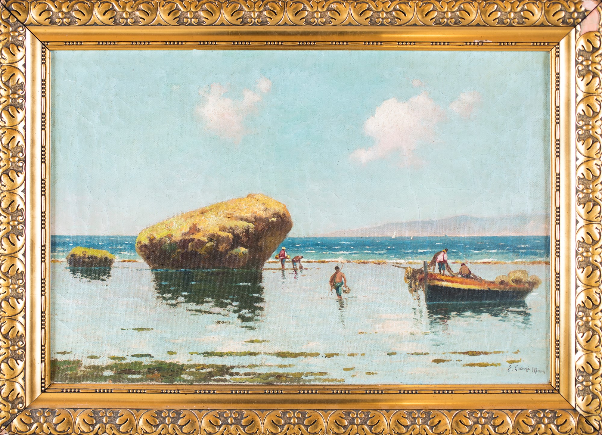 Erminio Kremp - Spiaggia palermitana - Firmato in basso a destra: E. Cremp a...