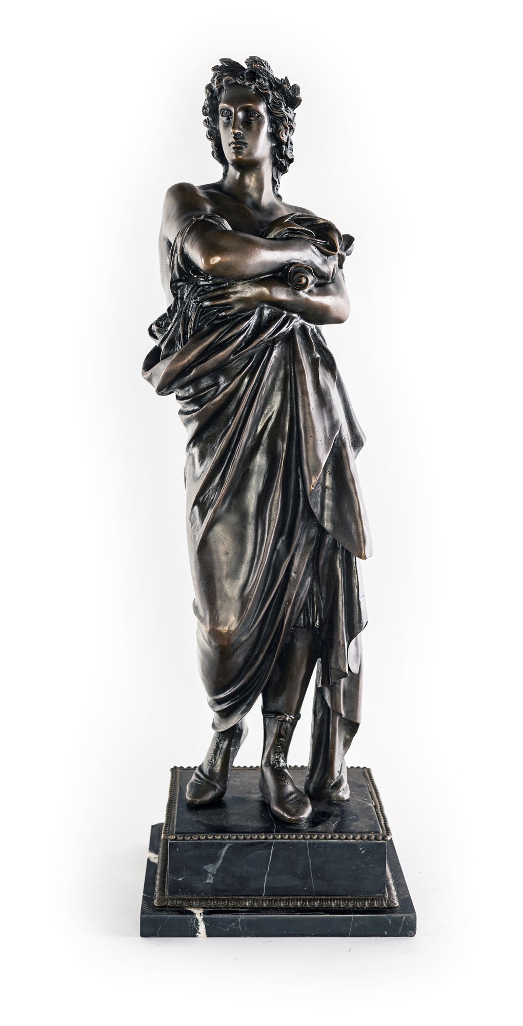 Scultura in bronzo - raffigurante un filosofo greco. Base squadrata in marmo...