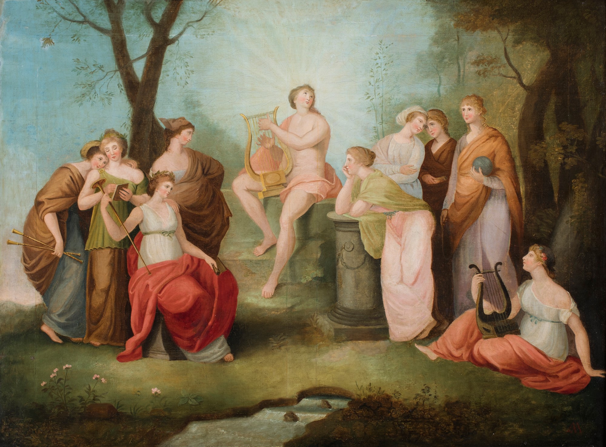 Lotto 306 | Apollo e le muse - Siglato A.A. in basso a destra - olio su tela - cm 91x121