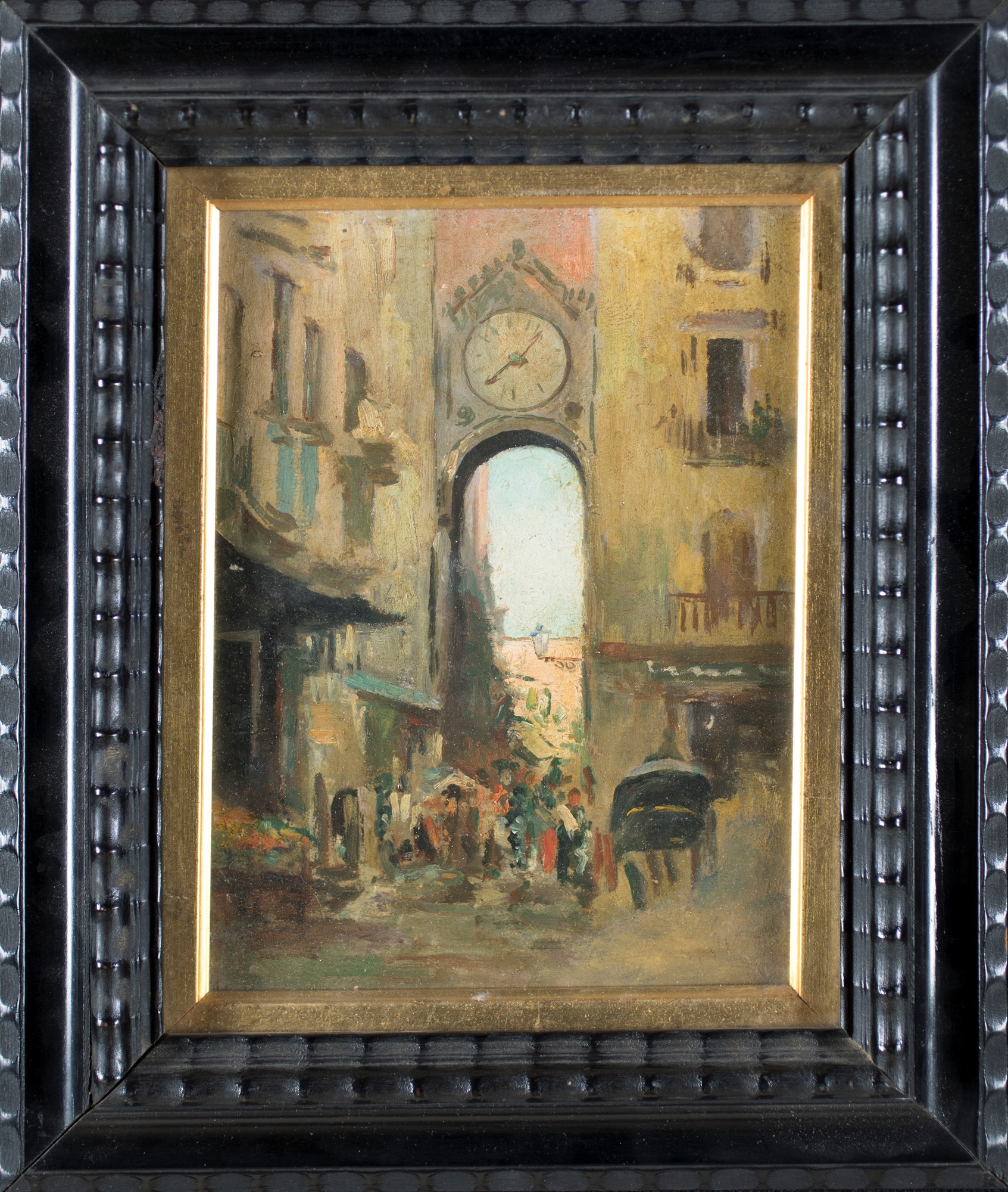 Pittore del XIX/XX secolo - Scorcio di paese - Iscritto al verso: Tessitore...