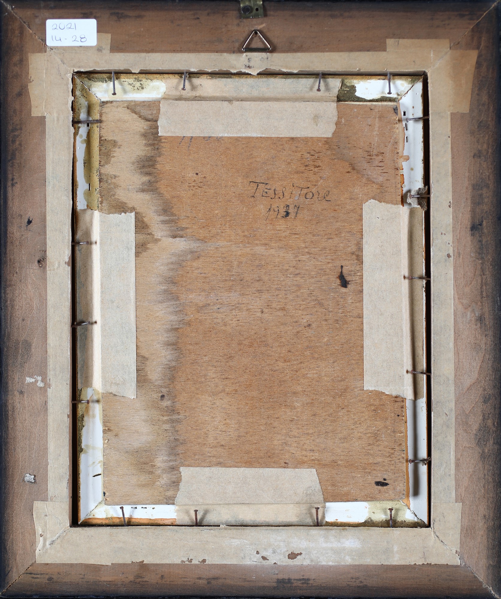 Pittore del XIX/XX secolo - Scorcio di paese - Iscritto al verso: Tessitore 1937 - olio su tavola - cm 22,5x17