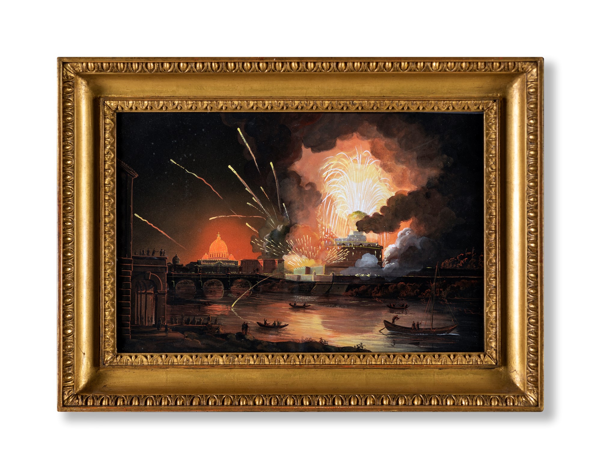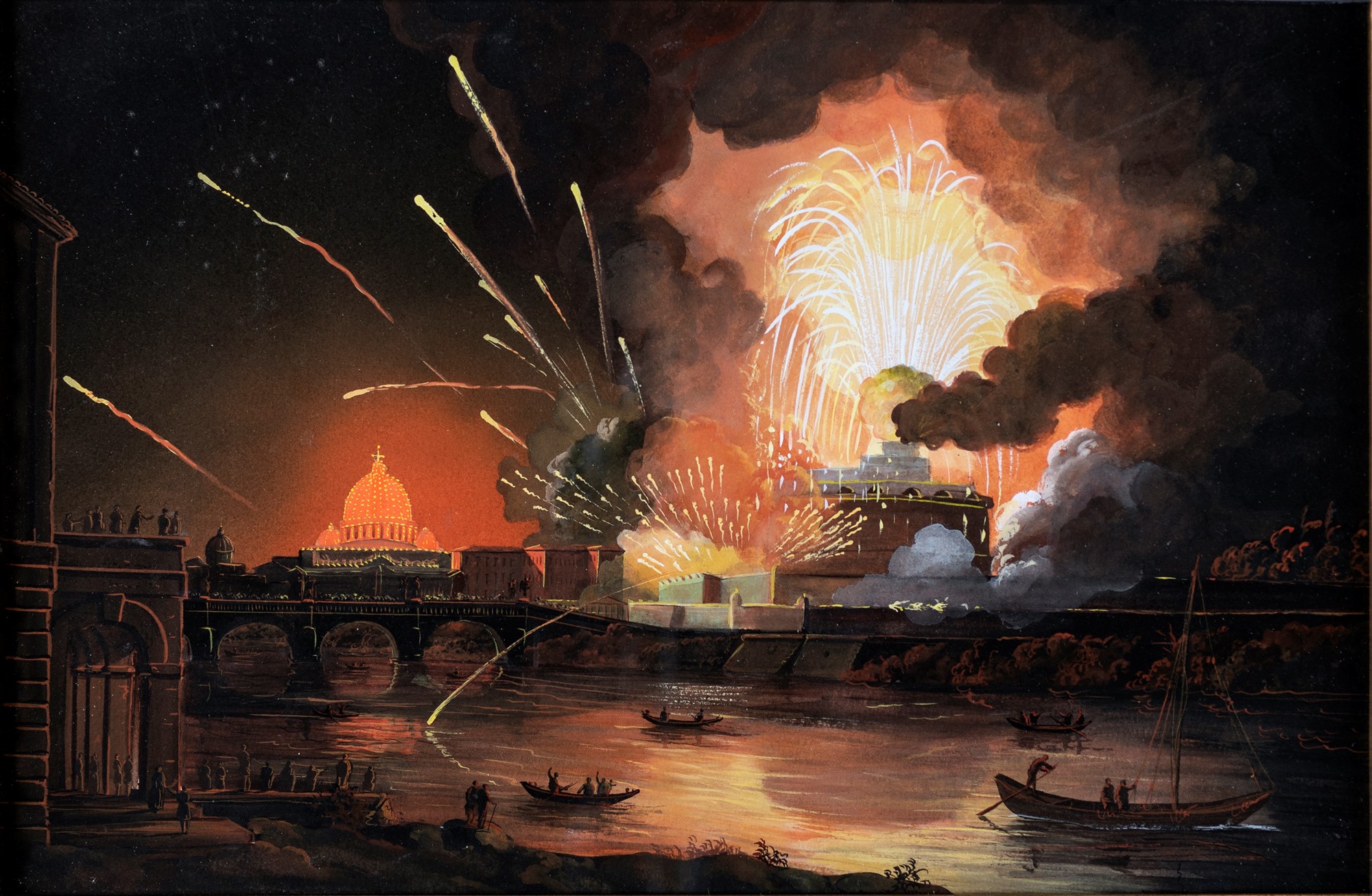 Pittore del XIX/XX secolo - La girandola a Castel Sant'Angelo - acquerello e tempera su carta - cm 29x42