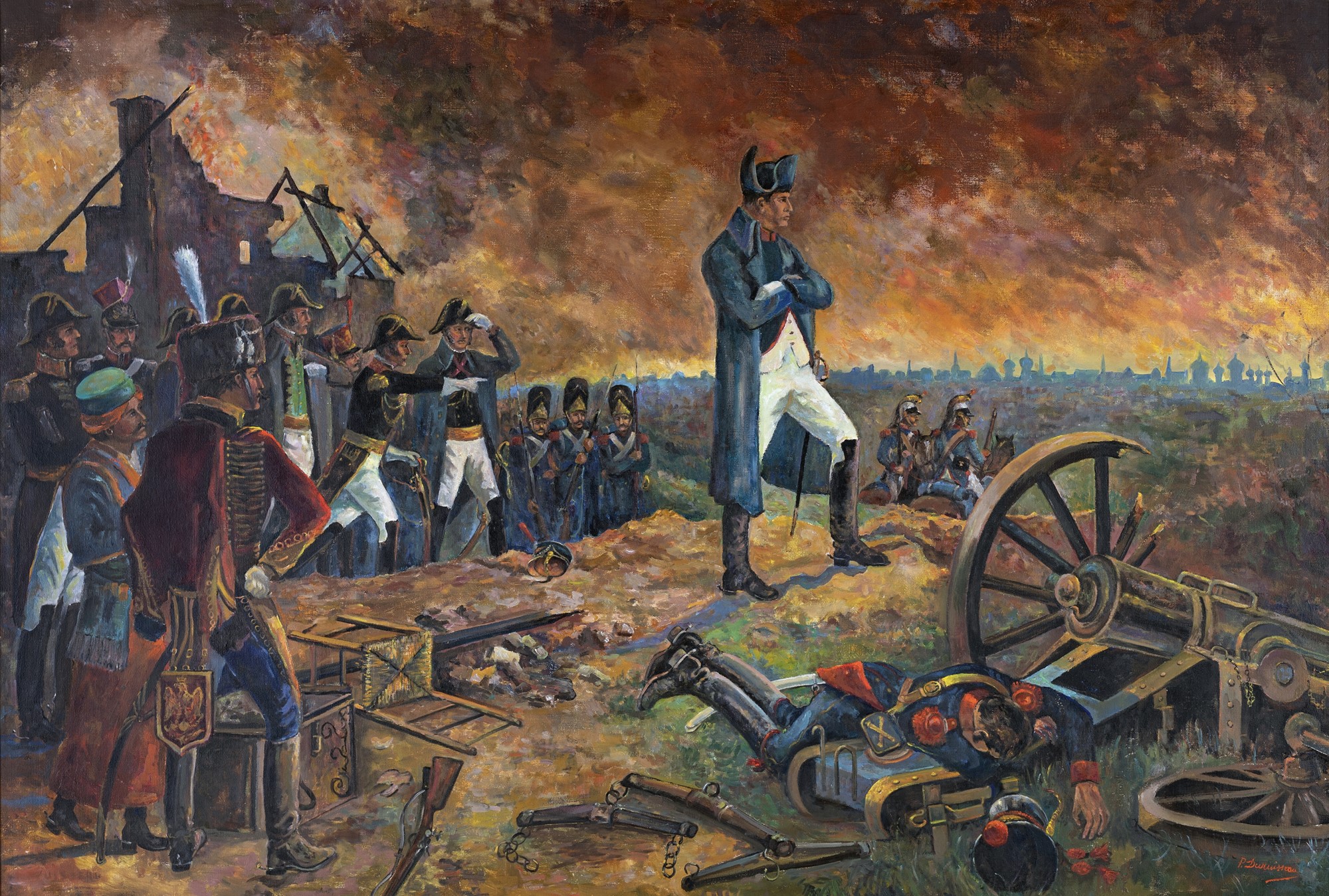 Pittore degli inizi del XX secolo - Napoleone sul campo di battaglia - olio...