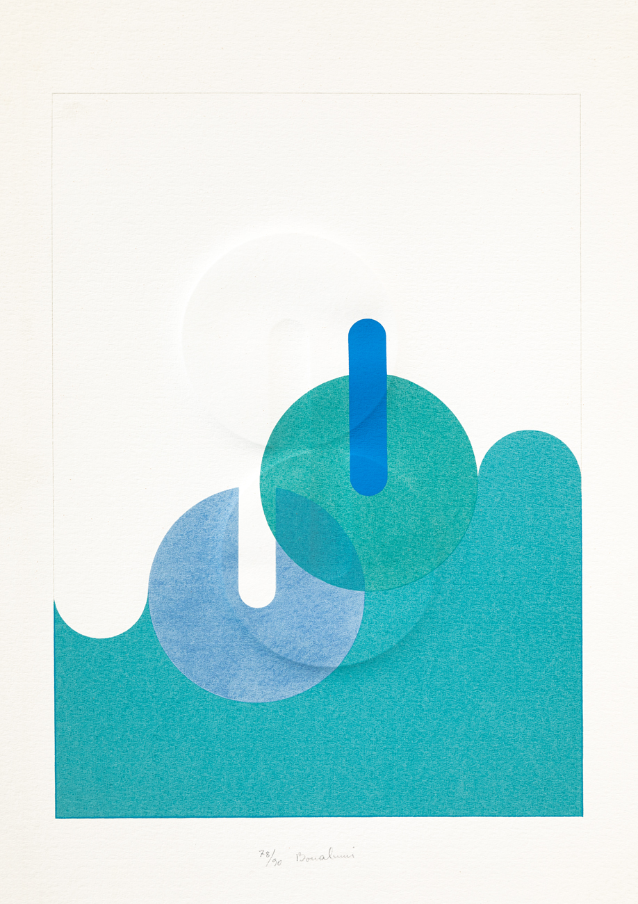 Serigrafia policroma su carta estroflessa ottenuta in calcografia