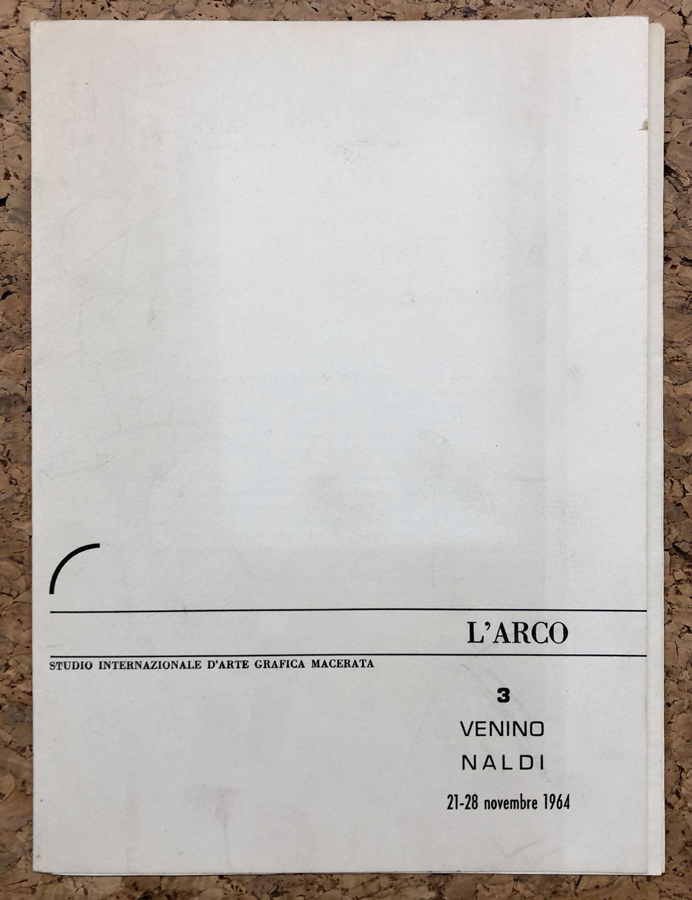 Invito alla mostra Venino Naldi tenutasi presso L'Arco Studio Internazional d'Arte Grafica Macerata contenente una litografia di Venino Naldi