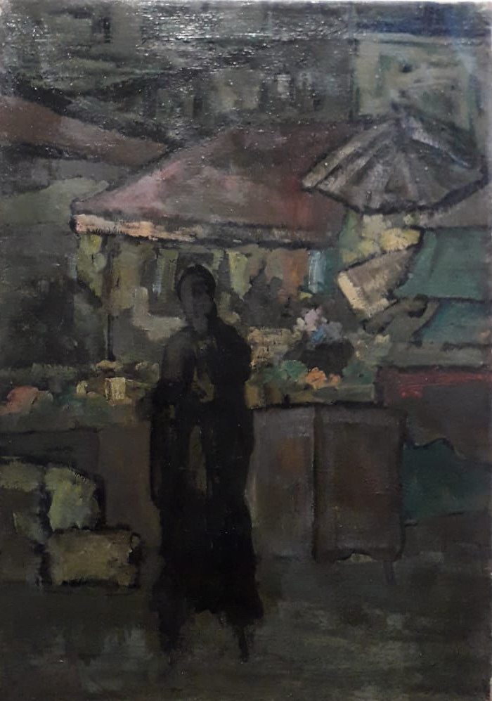 DANTI ALVARO Livorno (Li) 1911 Figura nel paese Olio su tela 70,00x50,00