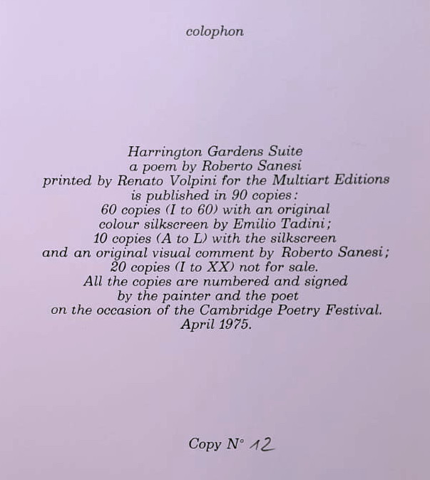 TADINI EMILIO Milano (Mi) 1927 Harrington Garden Suite 1975 Serigrafia su...