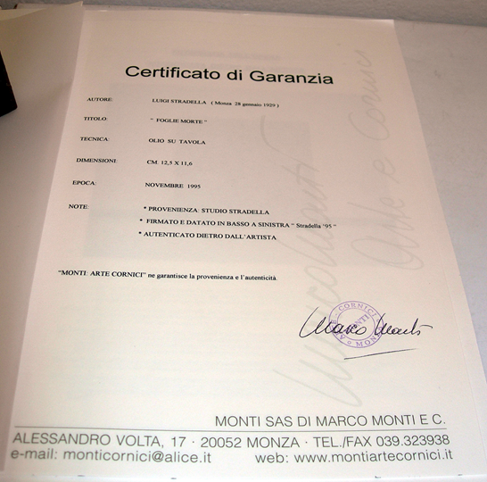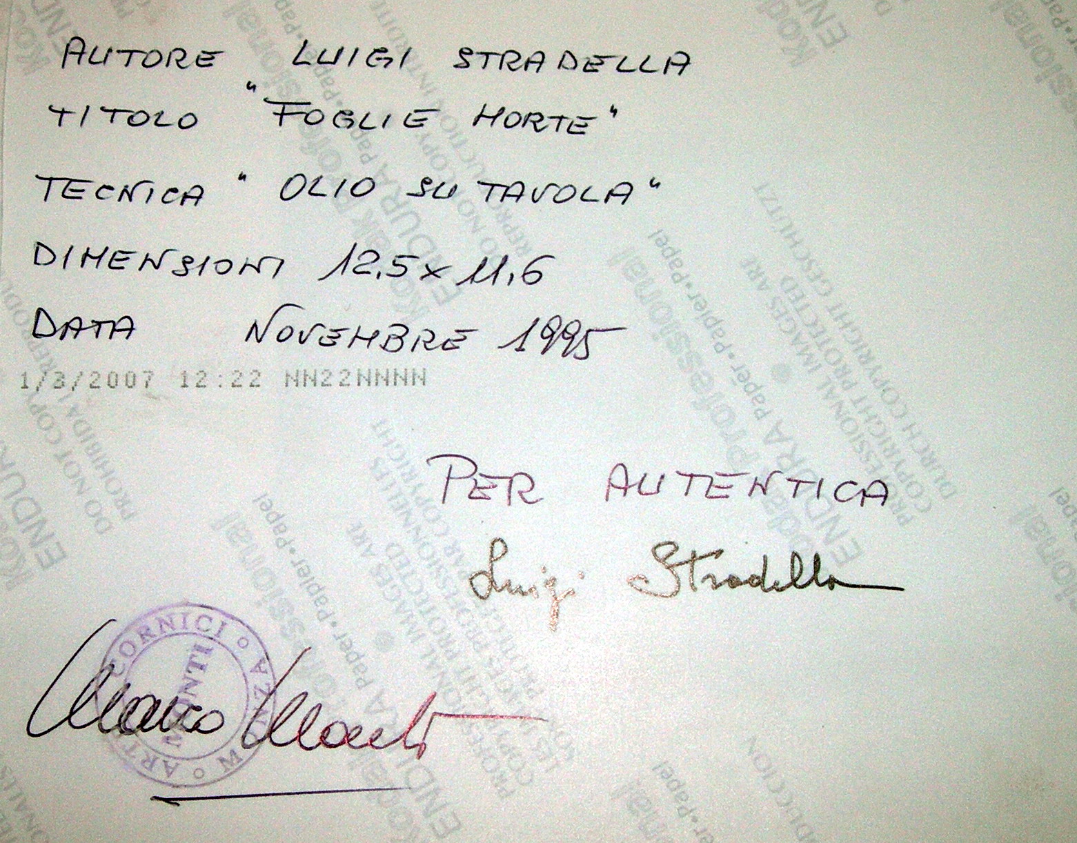 STRADELLA LUIGI Monza (Mb) 1929 Foglie morte 1995 Olio su tavola...