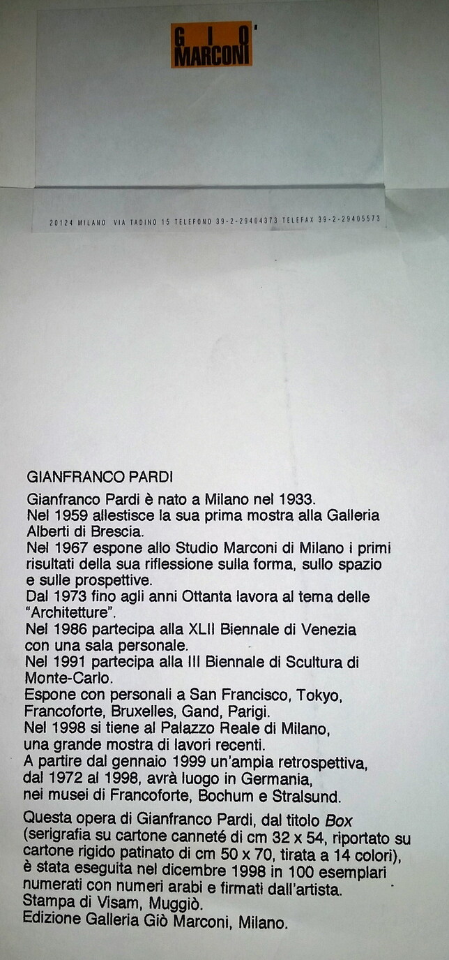 PARDI GIANFRANCO Milano (Mi) 1933 Box 1998 Serigrafia su cartone cannetè es....