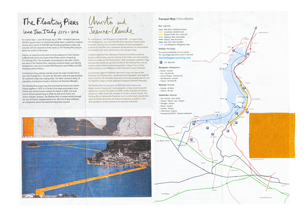 Campione del tessuto originale distribuito dal 18/06/2016 al 03/07/2016 in occasione dell'installazione dell'Artista sul lago d'Iseo