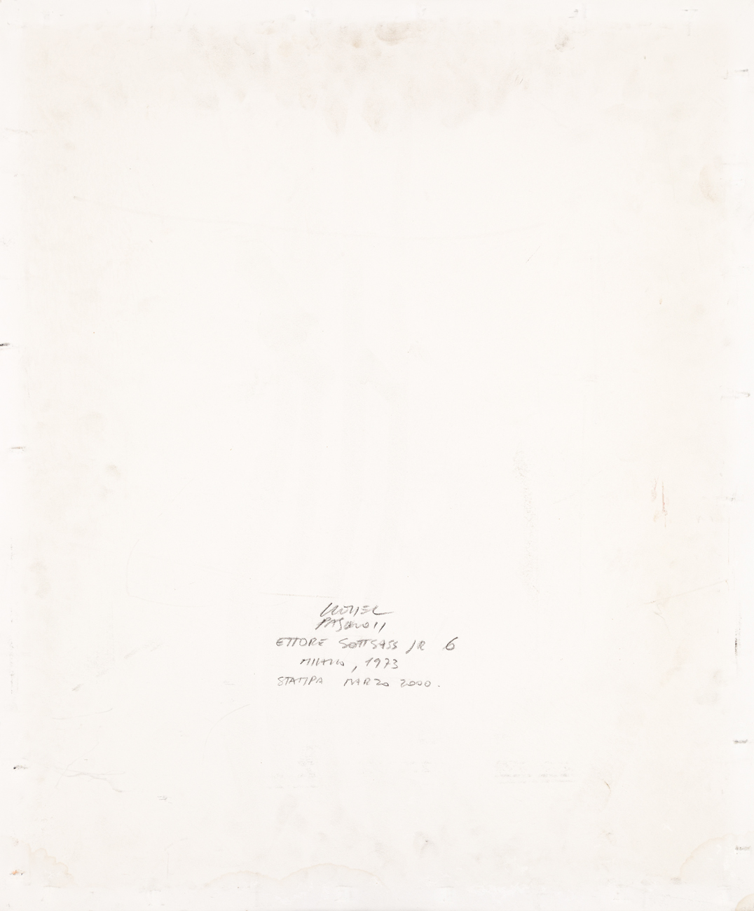 Iscrizione al retro "Ettore Sottsass Jr 6, Milano, 1973, Stampa Marzo 2000"
