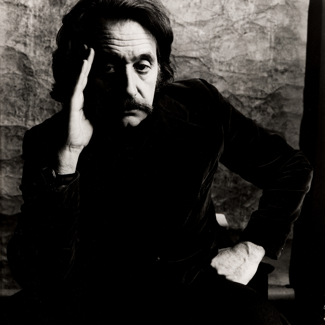 Fotografia in bianco e nero ritraente Ettore Sottsass