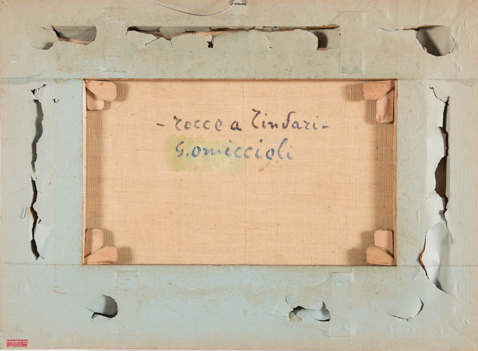 Giovanni Omiccioli (Roma 1901 - 1975), “Rocce a Tindari”. - Olio su tela, titolato e firmato al retro ‘Rocce a Tindari’ G. Omiccioli, H cm 30x51 Provenienza: Importante collezione privata.