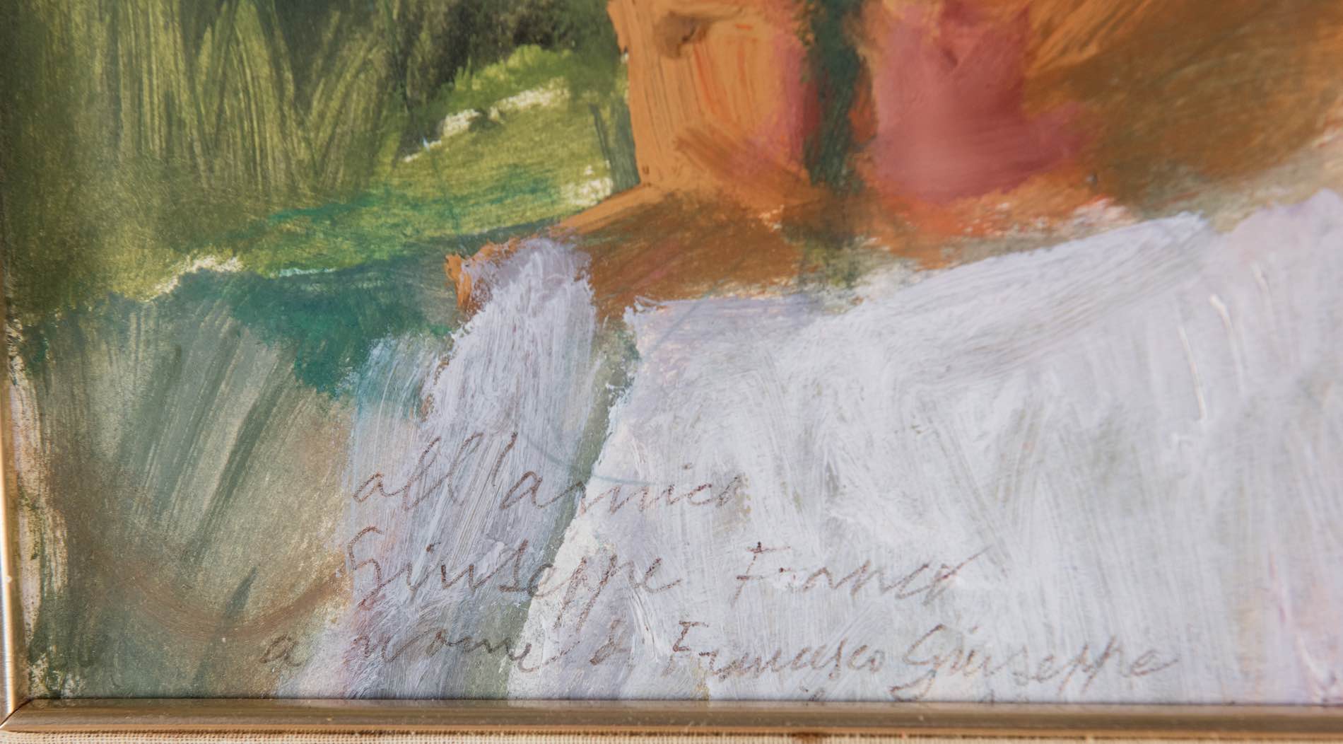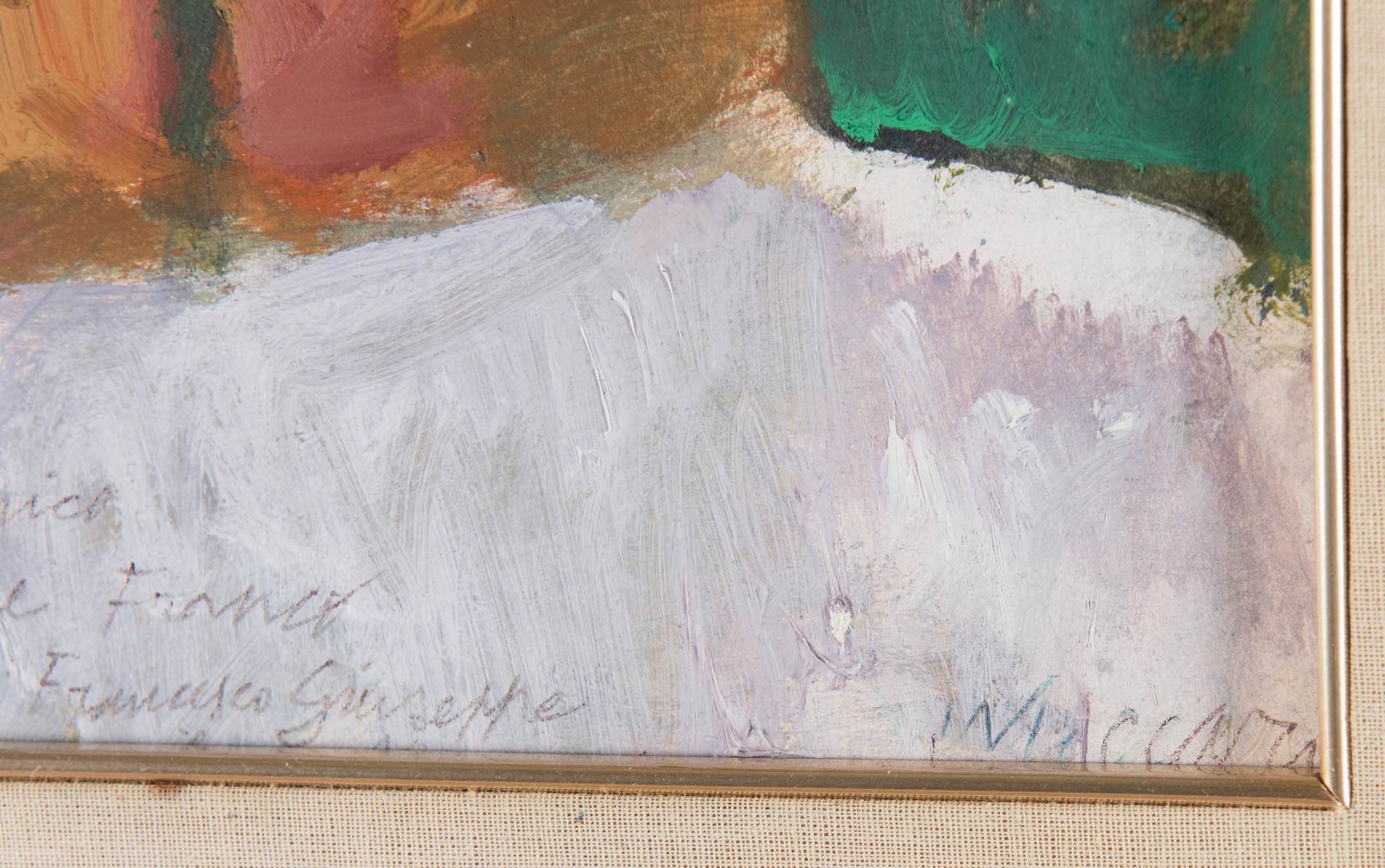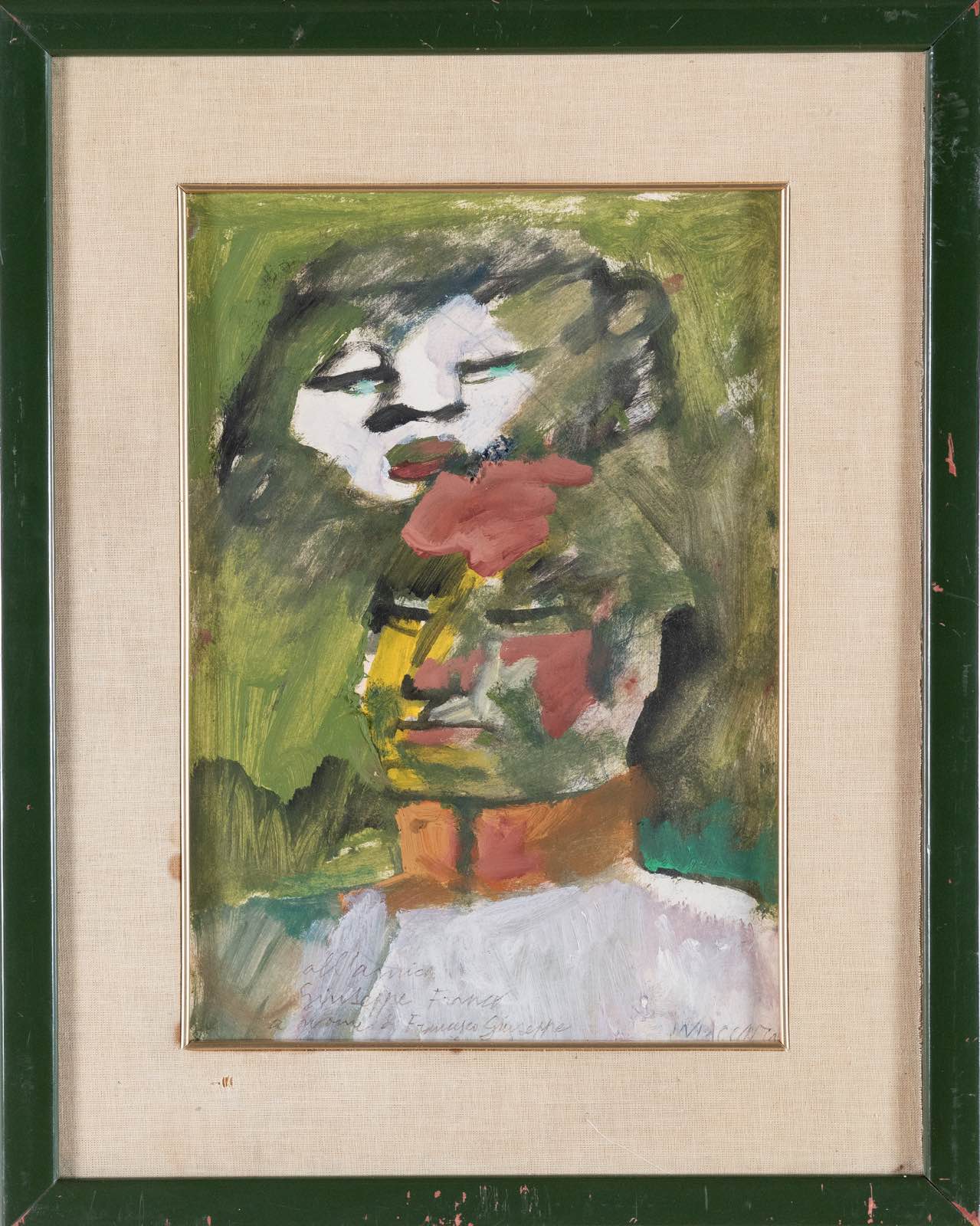 Mino Maccari (Siena 1898 - Roma 1989), “Figure”. - Olio su cartone, firmato in basso a destra Maccari, dedica in basso a sinistra, H cm 34x24 Opera donata dall’artista all’attuale proprietà.