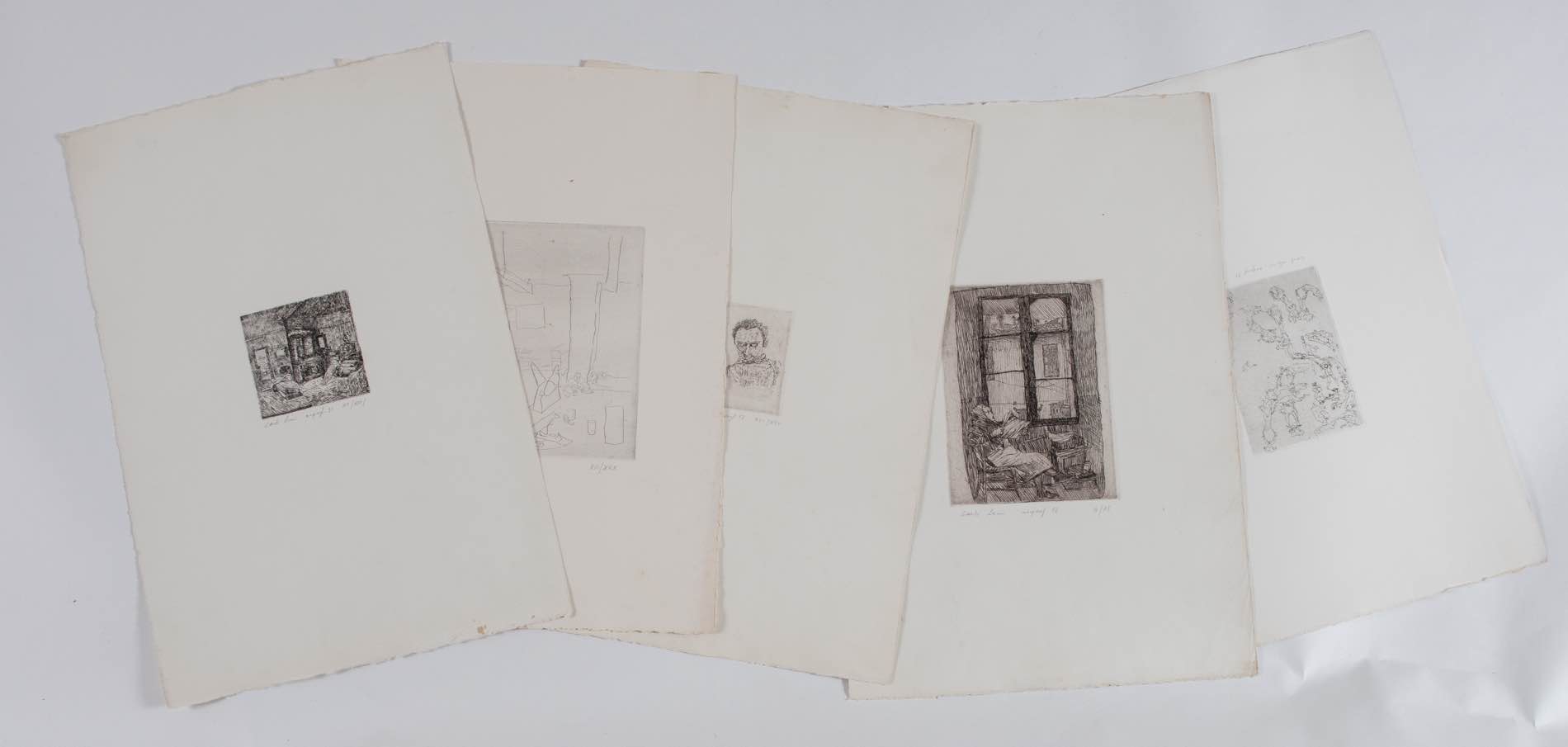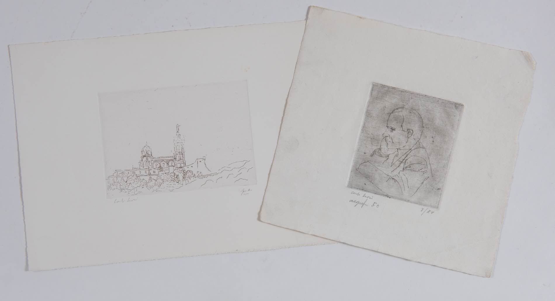 Carlo Leoni (Bologna 1925 - Vergato 1982), “Che diavolo d’uomo quel Verga”. - Cartellina con 11 opere grafiche numerate e firmate dall’artista; 9 incisioni H cm 36x53 - 1 incisione H cm 26.5x26.5 - 1 incisione H cm 35x25.5