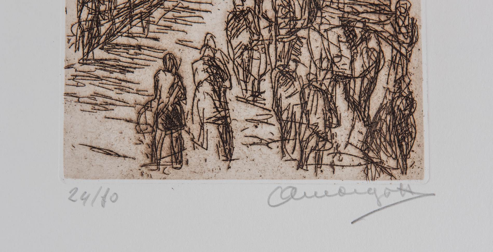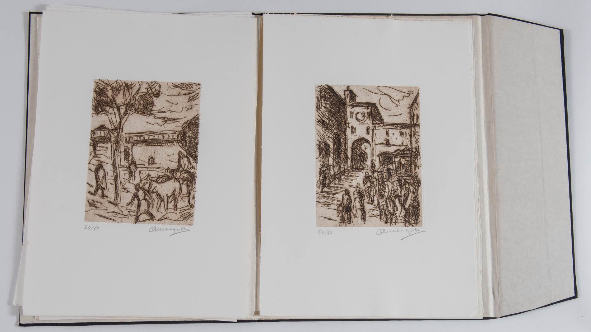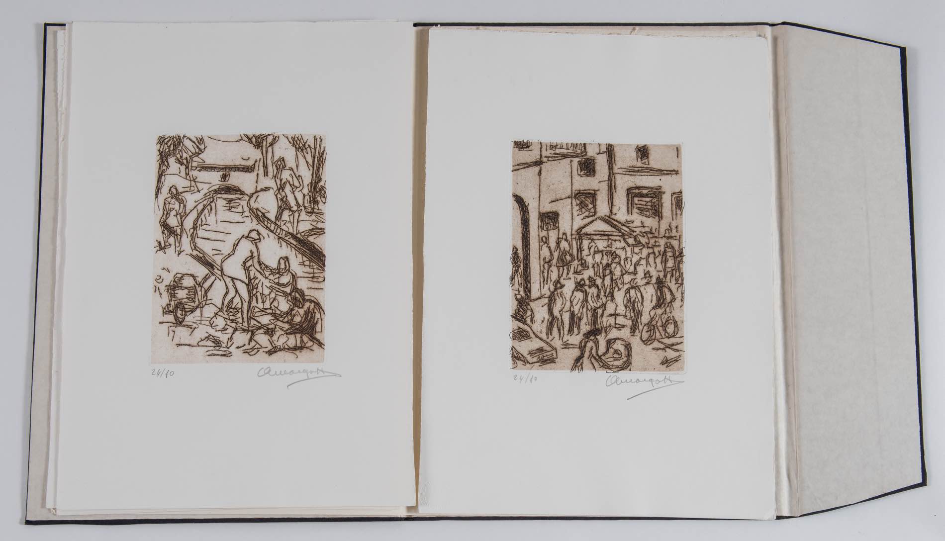 Anacleto Margotti (San Potito di Lugo 1896 - Imola 1984), “Senza titolo”, 1974. - Cartellina con 6 incisioni a colori numerate e firmate dall’artista, stampate in 80 esemplari formato H cm 35x50, timbro a secco Arte Grafica Ravenna, entro cartellina originale