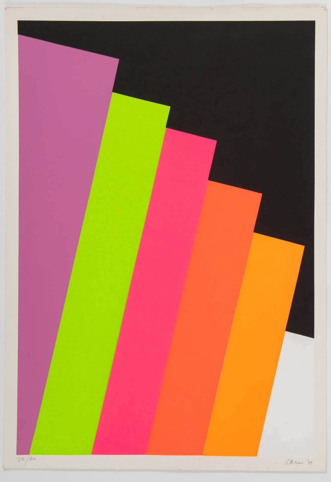 Eugenio Carmi (Genova 1920 - Lugano 2016), “Senza titolo”. - Litografia a colori su carta, firmata e datata in basso a destra Carmi 71, numero di tiratura in basso a sinistra 22/100, Lastra H cm 65.5x45.5 - Foglio H cm 70x50
