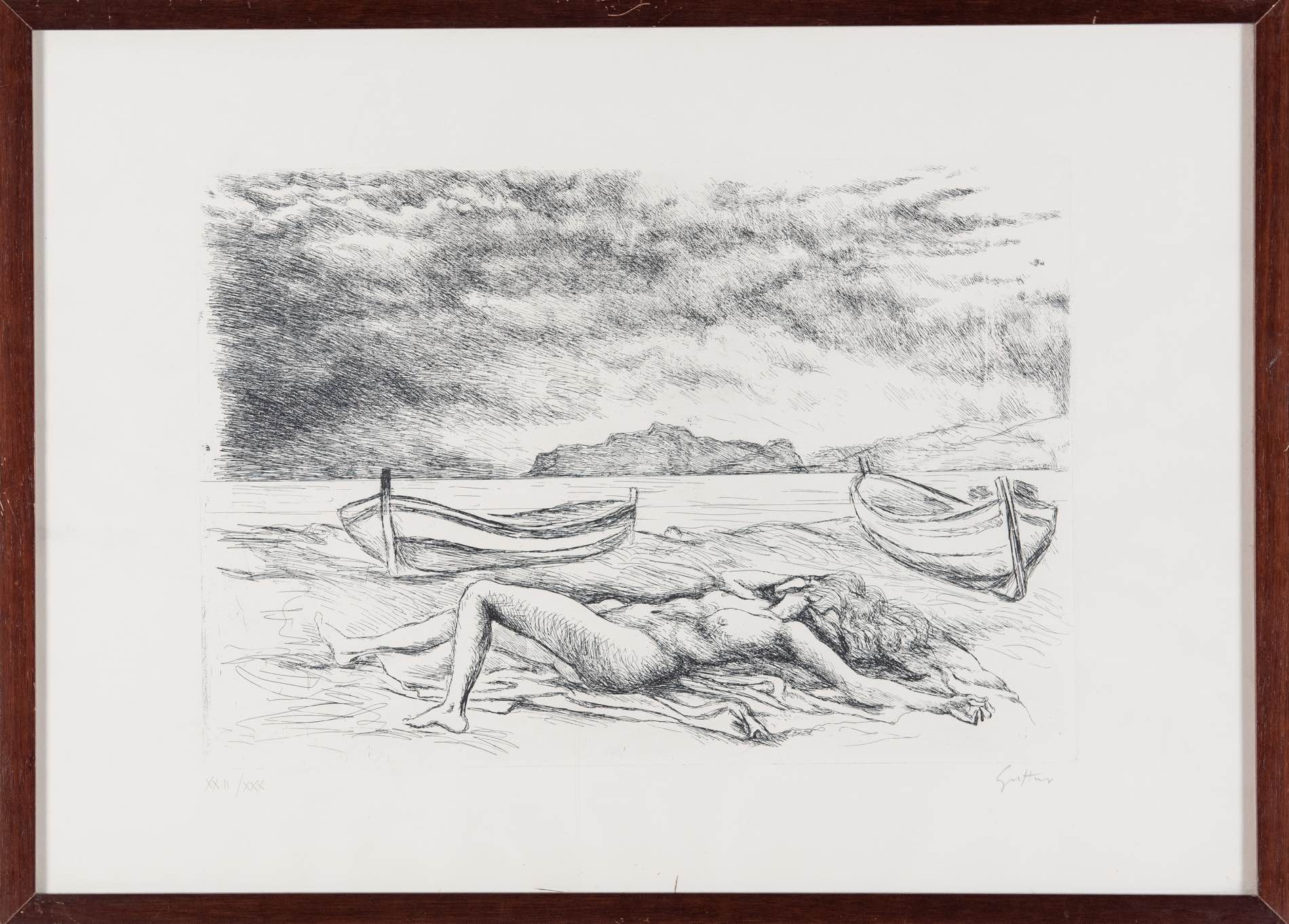 Renato Guttuso (Bagheria 1911 - Roma 1987), “Naufraga”. - Litografia su carta, firmata in basso a destra Guttuso, numero di tiratura in basso a sinistra XXII/XXX, Lastra H cm 35x50