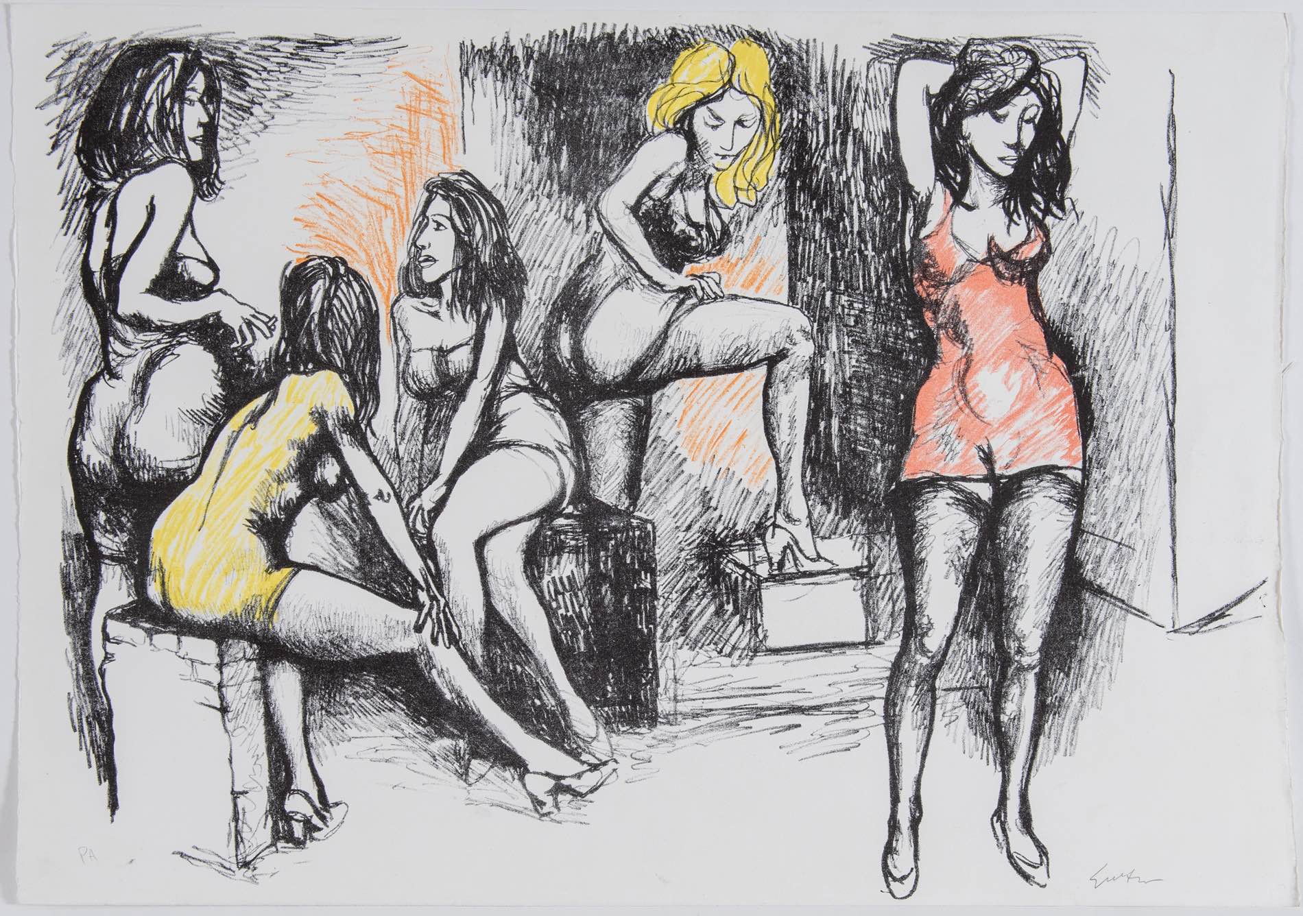 Renato Guttuso (Bagheria 1911 - Roma 1987), “Figurativo”. - Litografia a colori su carta, firmata in basso a destra Guttuso, esemplare PA, Foglio H cm 50x70 Al retro reca certificato di autenticità e provenienza e timbri Collezione tempi dell’Arte - Roma.