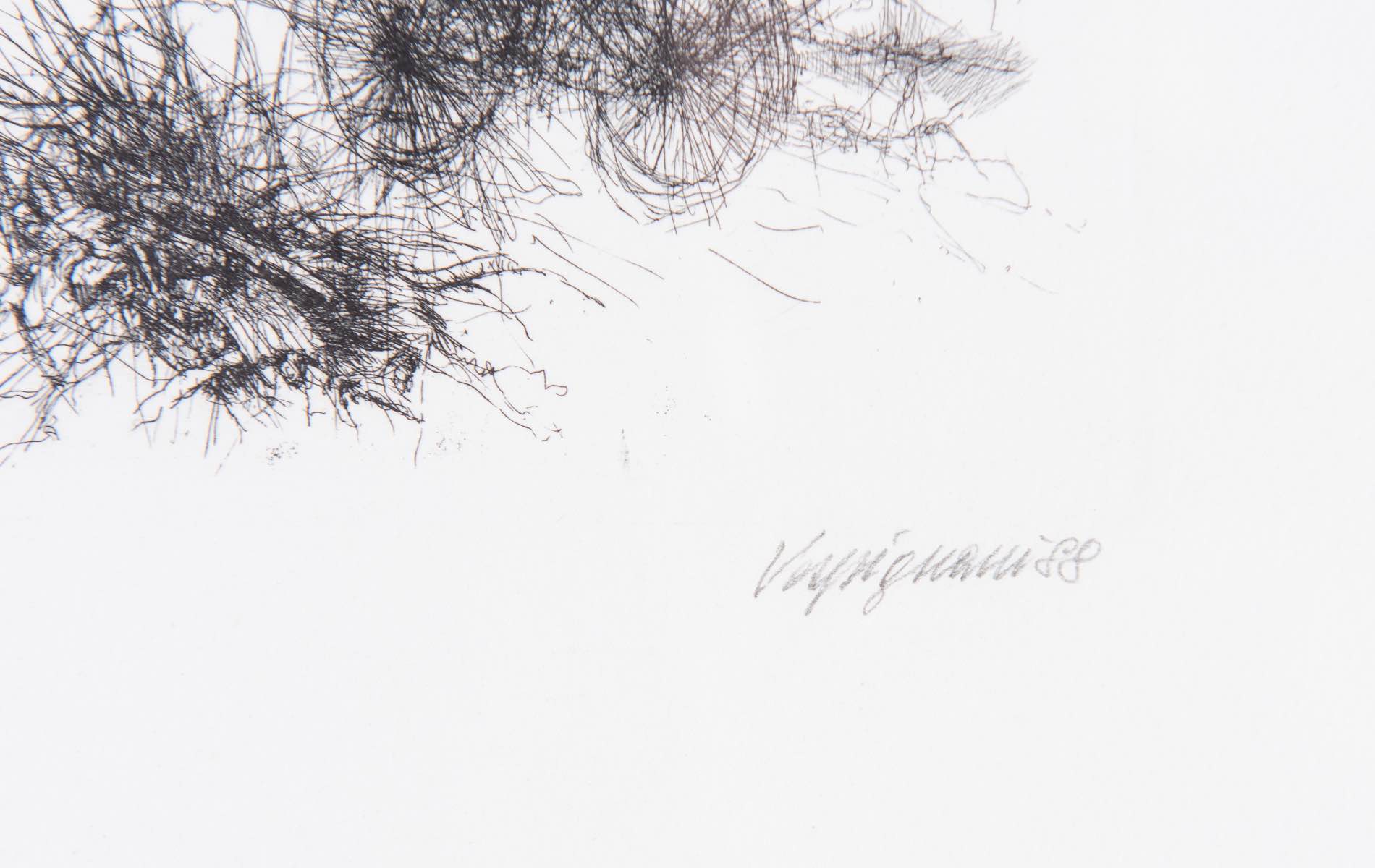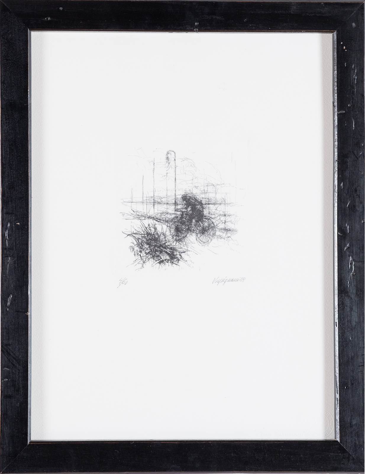 Renzo Vespignani (Roma 1924 - Roma 2001), “Ciclista”, 1988. - Acquaforte su carta, firmata e datata in basso a destra Vespignani ‘84, numero di tiratura in basso a sinistra 4/60, Foglio H cm 50x35 - Lastra H cm 15x15