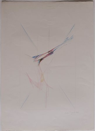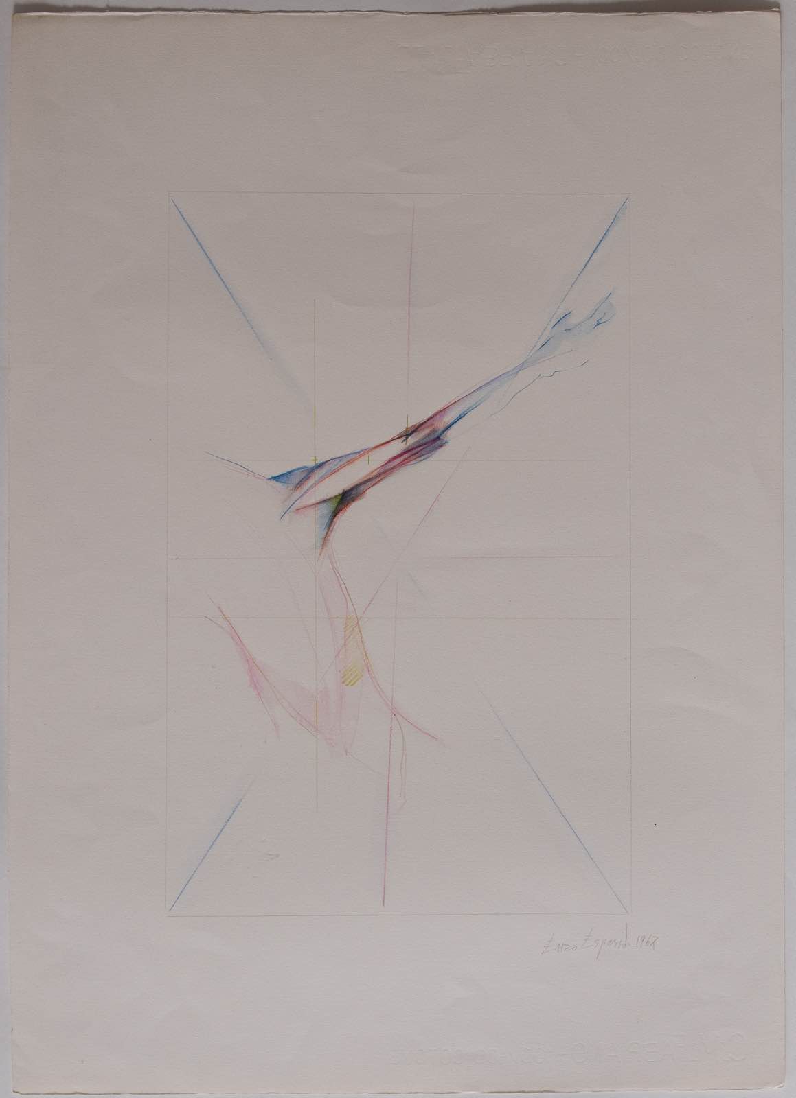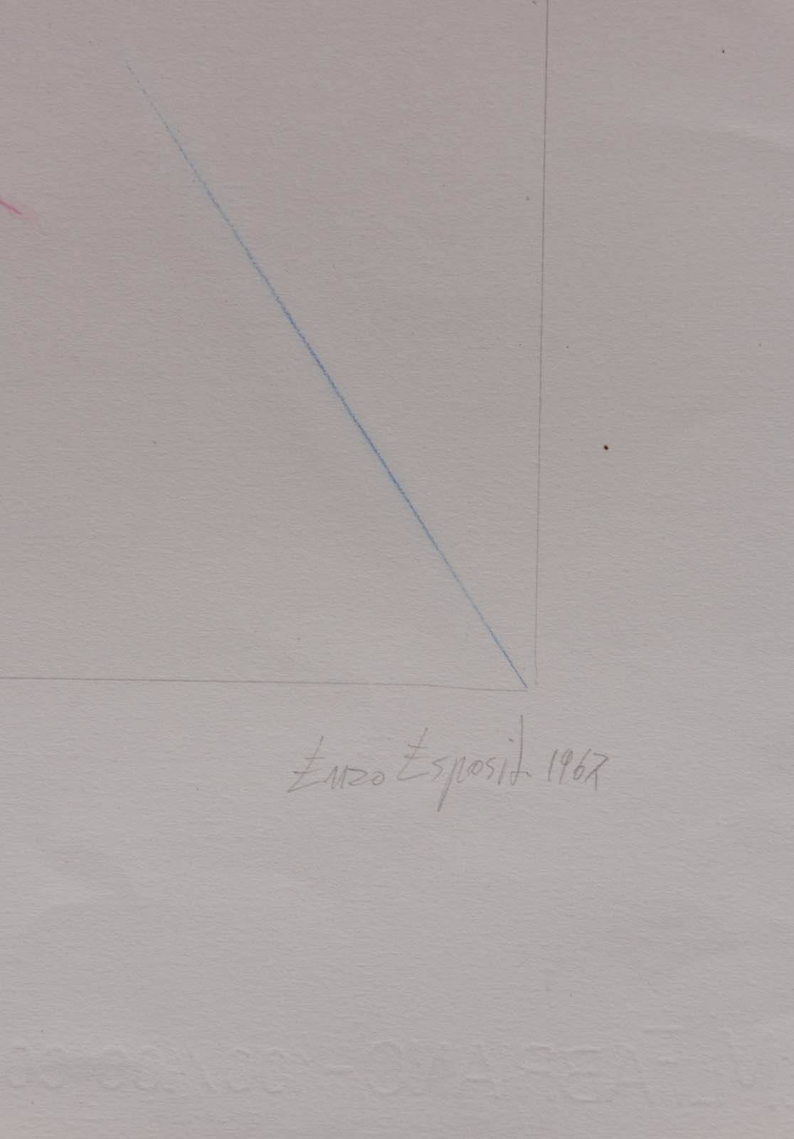 Enzo Esposito (Benevento 1946), “Senza titolo”, 1967. - Tecnica mista su carta, firmata e datata in basso a destra Enzo Esposito 1967, Foglio H cm 69x50 Reca timbro al retro Studio Arti Visive Oggetto - Caserta e numero 209.