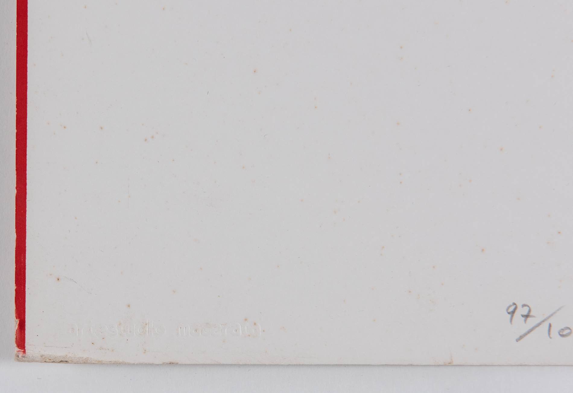 Maurizio Mocchetti (Roma 1940), “Colpo di Balestra”, 1970. - Litografia su carta, firmata e datata in basso a destra Maurizio Mocchetti 1970, numero di tiratura e titolo in basso a sinistra 97/100 Colpo di Balestra, timbro a secco Artestudio Macerata, Foglio H cm 49x64