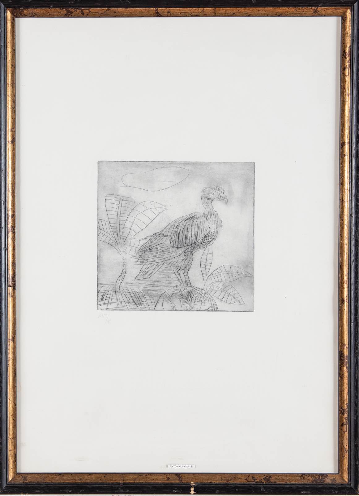 Antonio Ligabue (Zurigo 1899 - Gualtieri 1965), “Condor”. - Puntasecca su carta, numero di tiratura in basso a sinistra XVIII/IC, timbro a secco Casa d’Arte Guastalla Galleria, Augusto Agosta Tota Editore - Guastalla, H cm 24x20.7 Al retro didascalia.